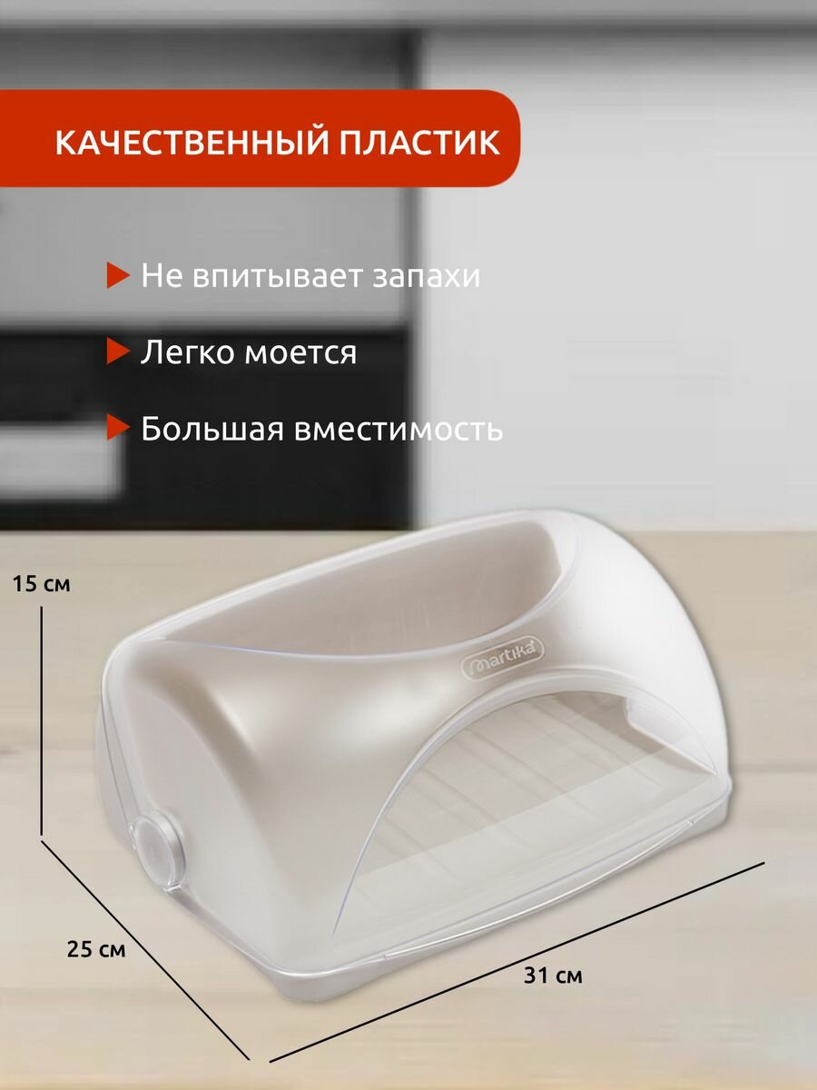 Хлебница Liveingreen пластмассовая "Грана", 31х25х15 см, светло-серый
