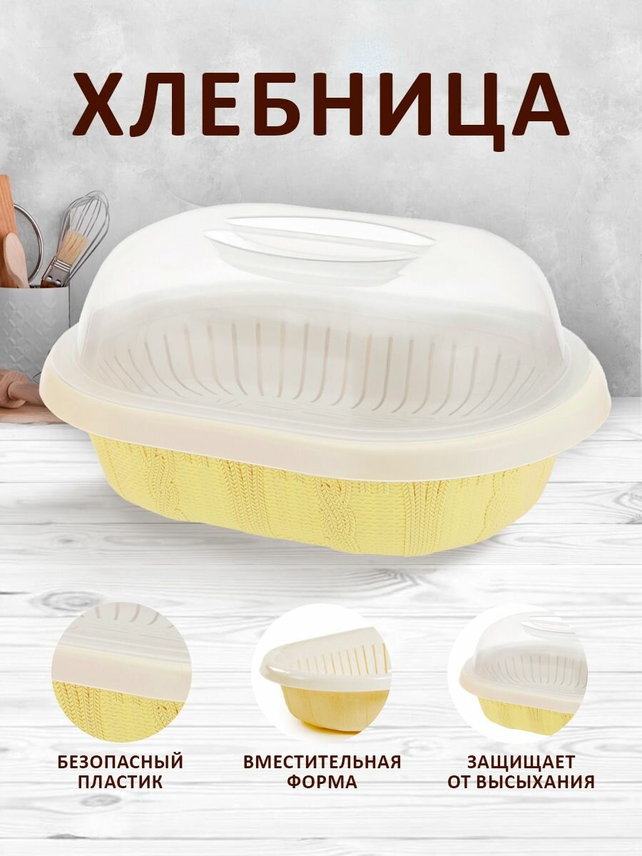 Хлебница пластиковая с крышкой контейнер для хранения, бежевый