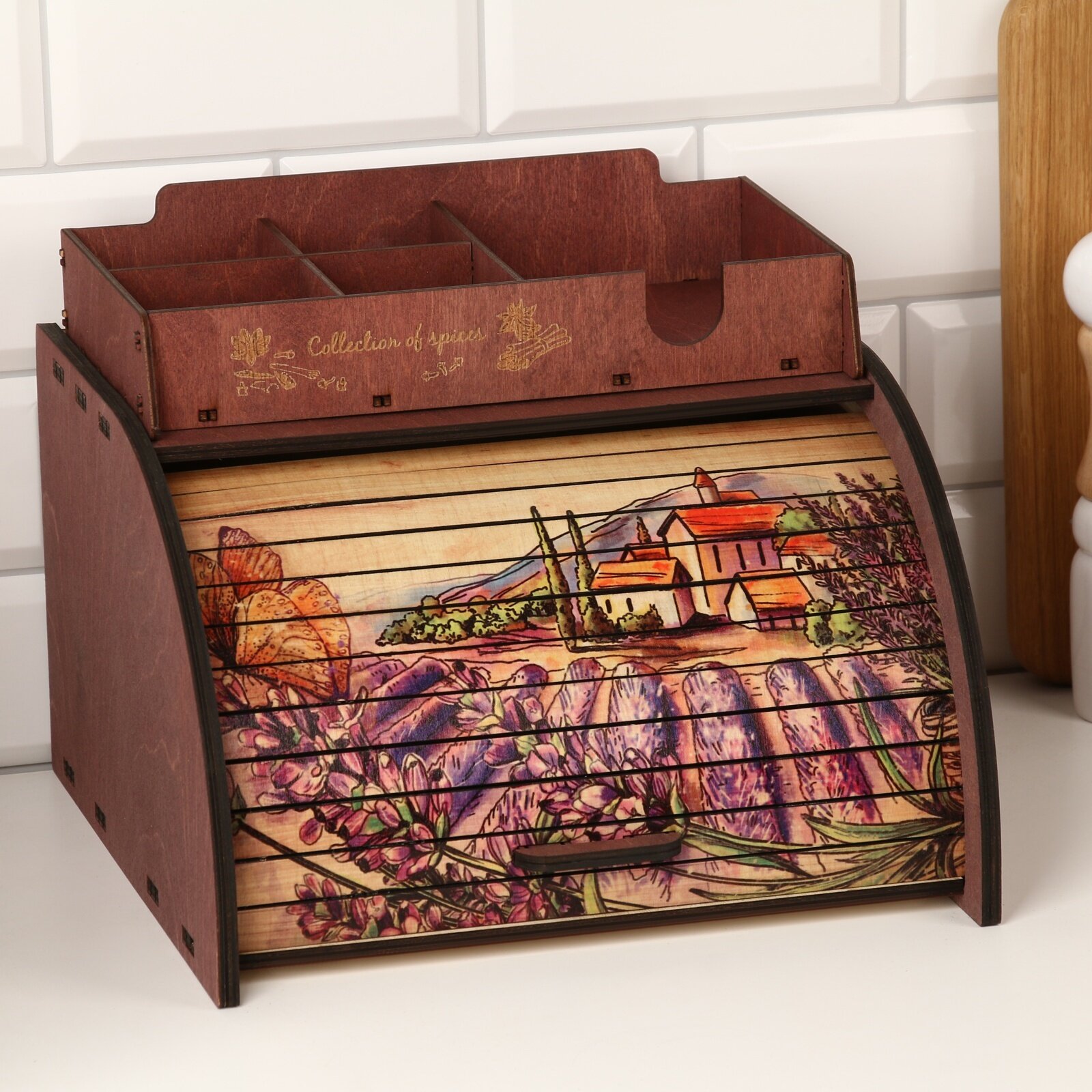 Купить Хлебница деревянная с подставкой под специи "Лаванда", 29,6 х 29,6 х 23,7см, венге
