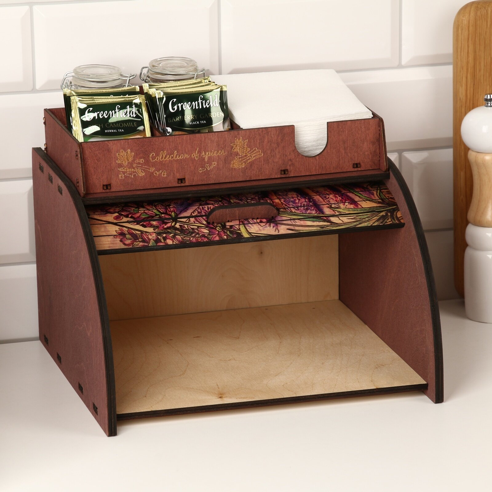 Хлебница деревянная с подставкой под специи "Лаванда", 29,6 х 29,6 х 23,7см, венге интересное:
