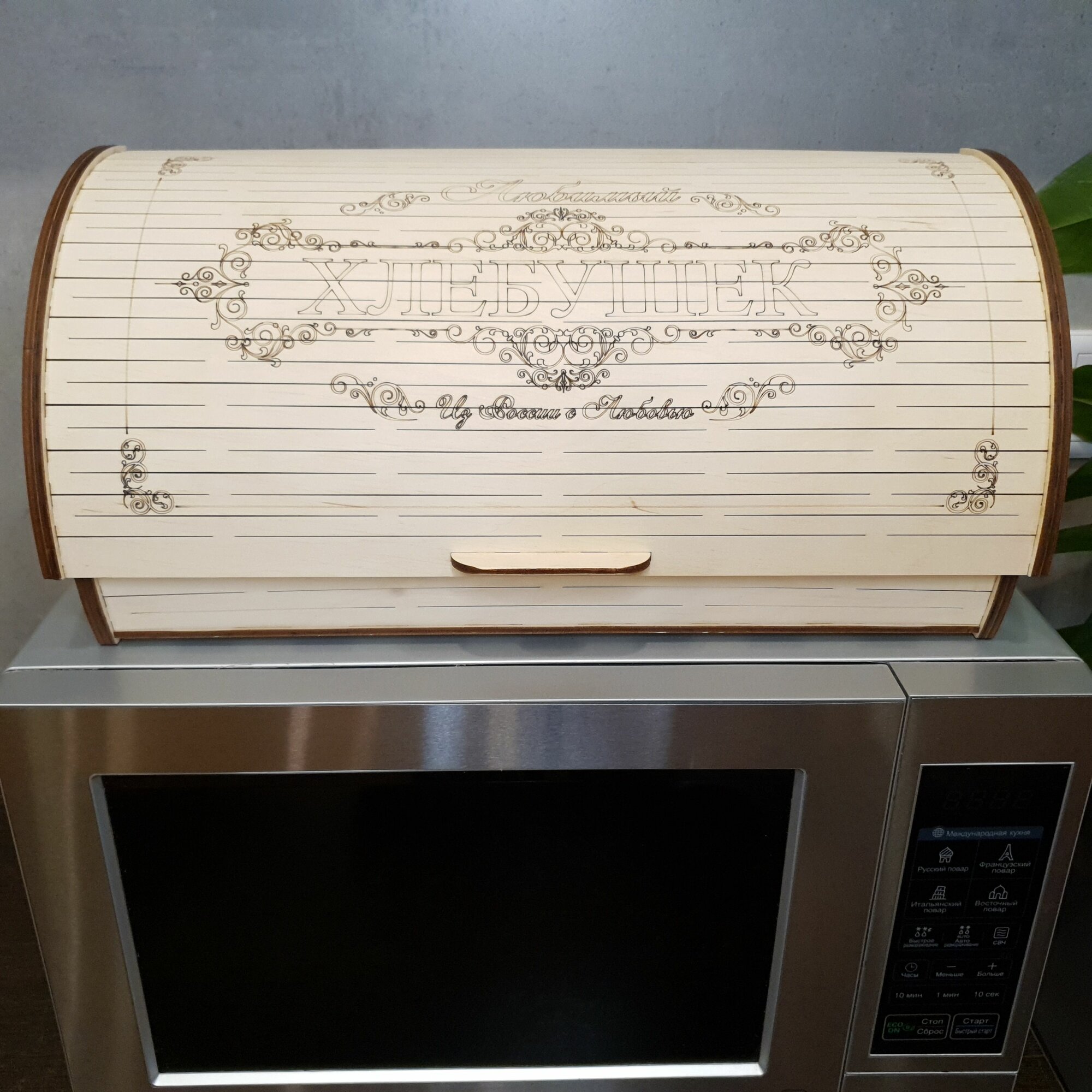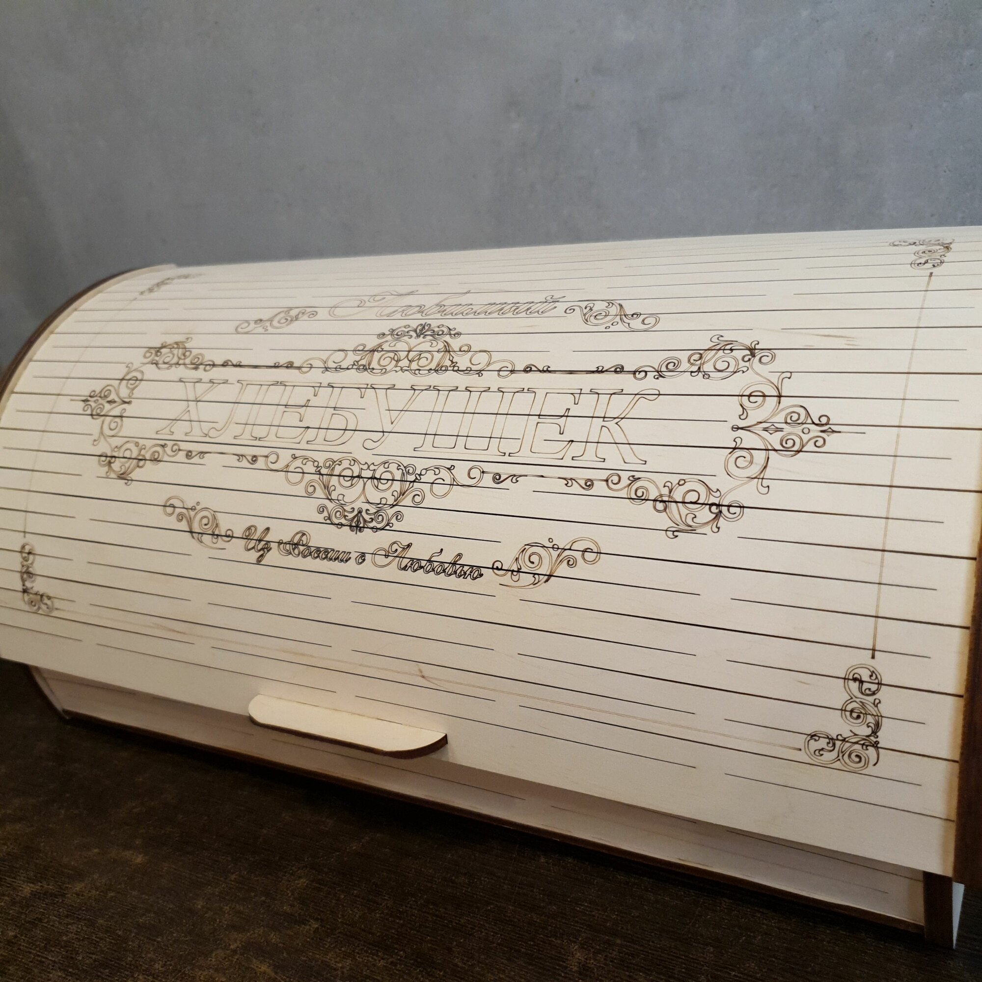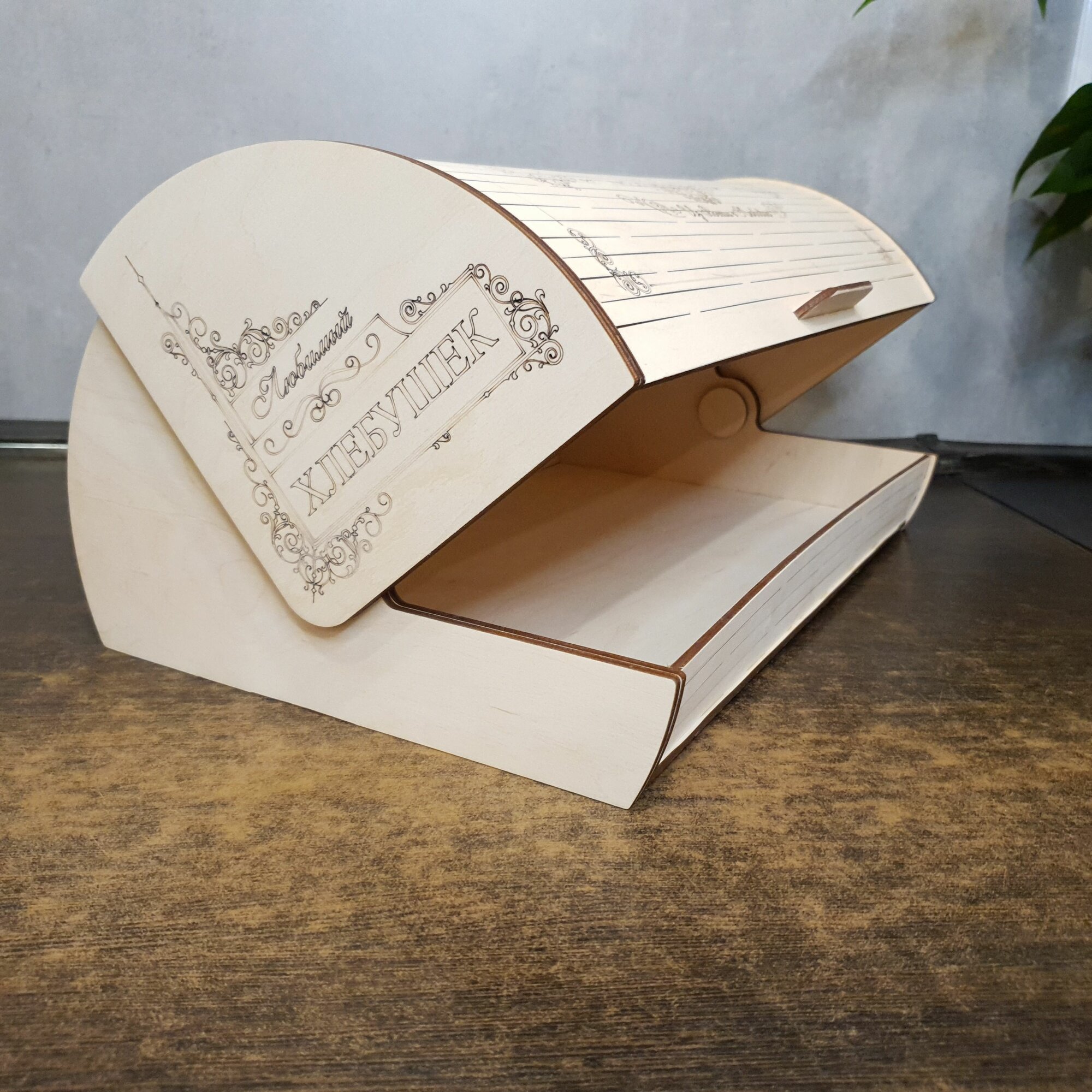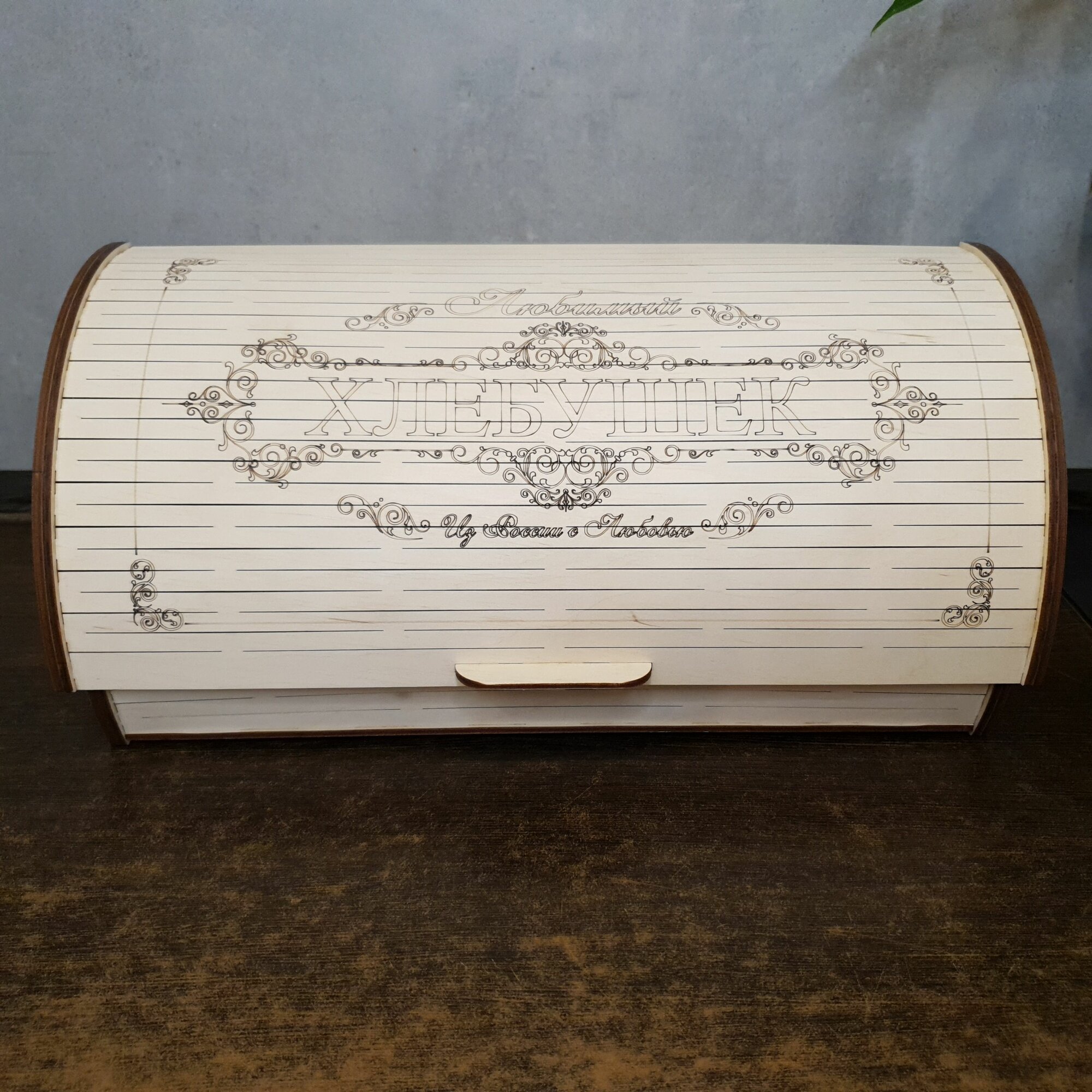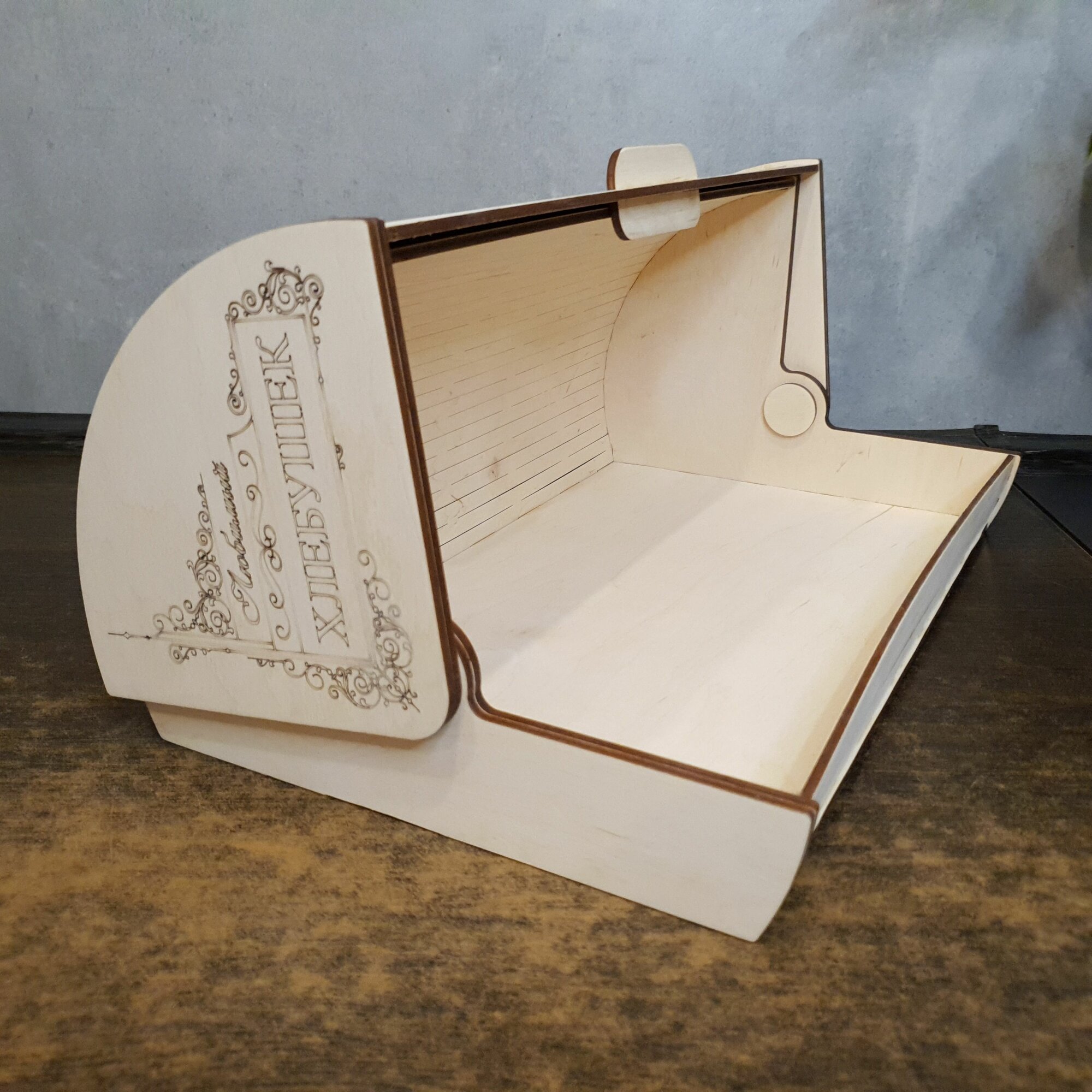 Хлебница деревянная Vintage lite "Любимый хлебушек из России с любовью", хлебница, хлебница с крышкой, хлебница деревянная большая, хлебница без доски, без цвета, 40х26х19 см