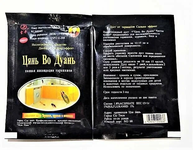 | Дополнительная информация | Порошок Цянь Во Дуань не только эффективно уничтожает тараканов, но и предотвращает их повторное появление |