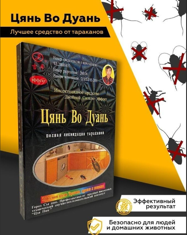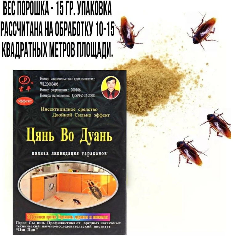 | Дополнительная информация | Порошок Цянь Во Дуань не только эффективно уничтожает тараканов, но и предотвращает их повторное появление |