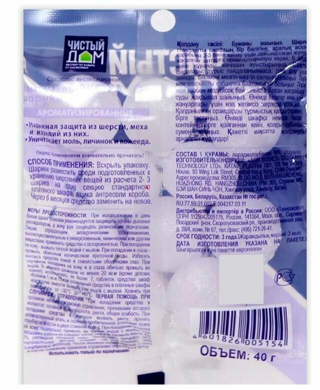 | Подробная комплектация | Шарики от моли 40 гр. Упаковка 10 шт. |