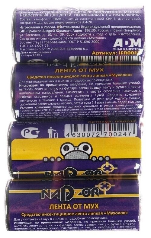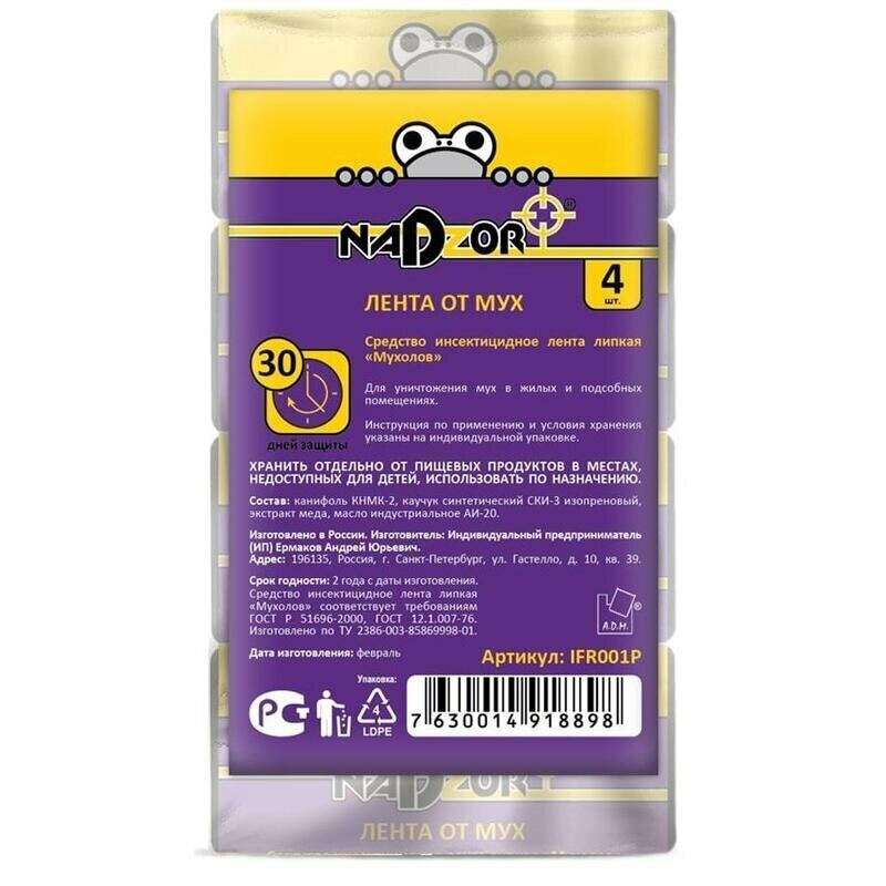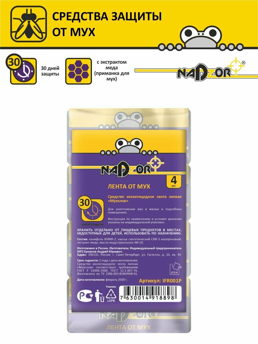 Липкая лента от мух мухоловка комплект 4 шт., NADZOR, IFR001P