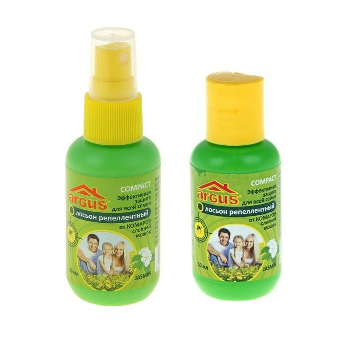 Лосьон ARGUS COMPACT репеллентный от комаров, слепней и мошек с запахом жасмина, 65 г, 50 мл, зеленый интересное: