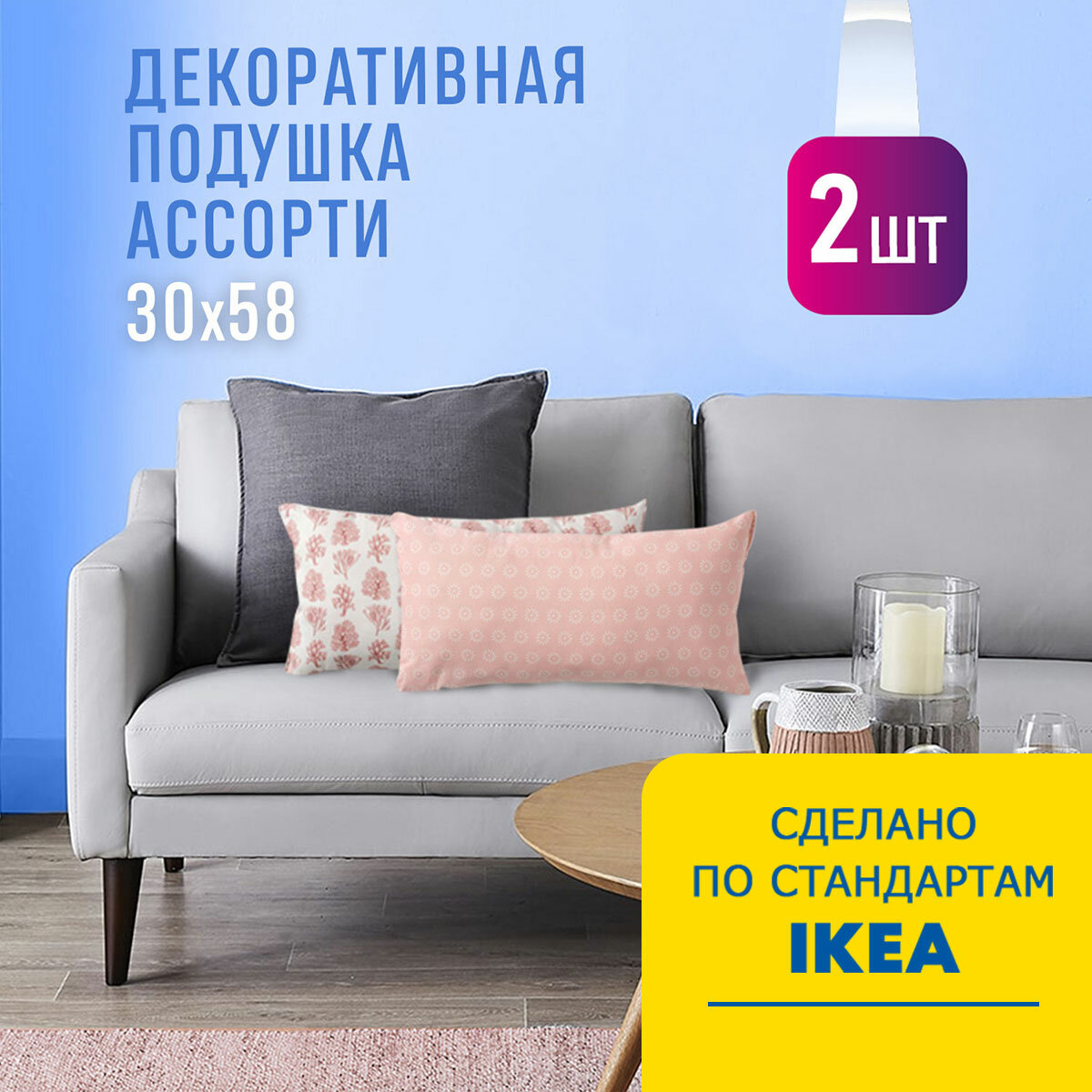 Подушка Декоративная "вармал", 30х58, комплект 2шт, ассорти