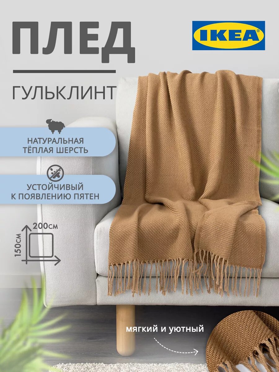 Плед ИКЕА ГУЛЬКЛИНТ 1.5-спальное, бежевый