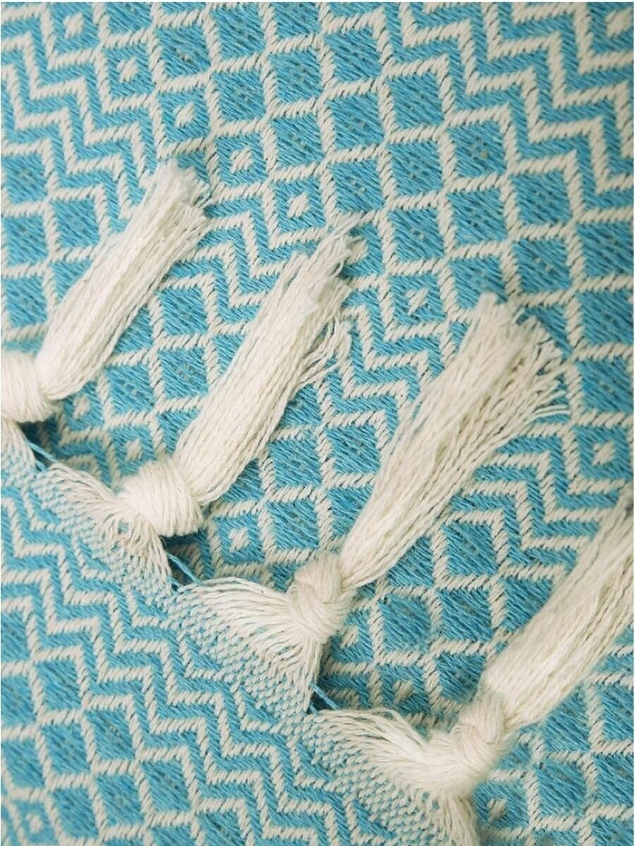 Купить Плед на диван хлопок с бахромой Venera 145х200 см, Голубой с узорами