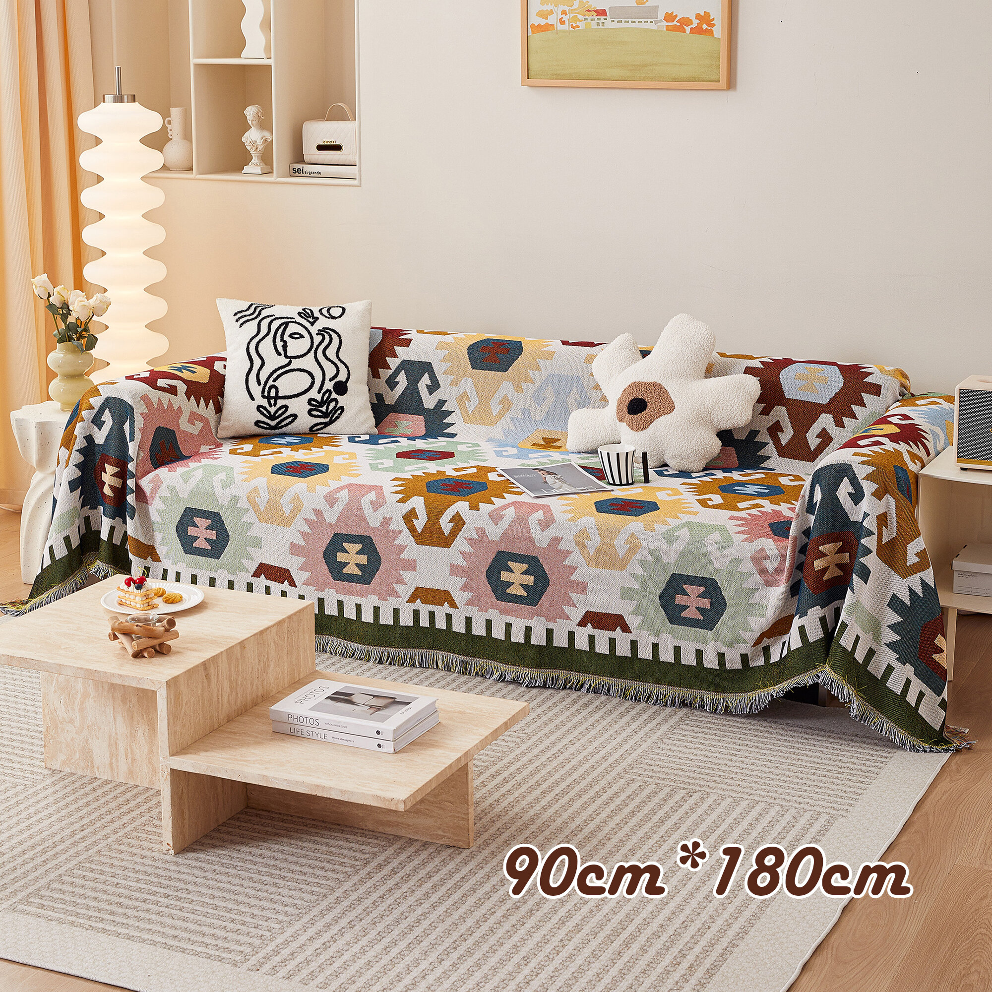 Покрывало на диван, плед для пикника, пляжное покрывало, плед хлопковый / полиэстер, современное покрывало для дивана в стиле INS с геометрический узор, размер 90X180