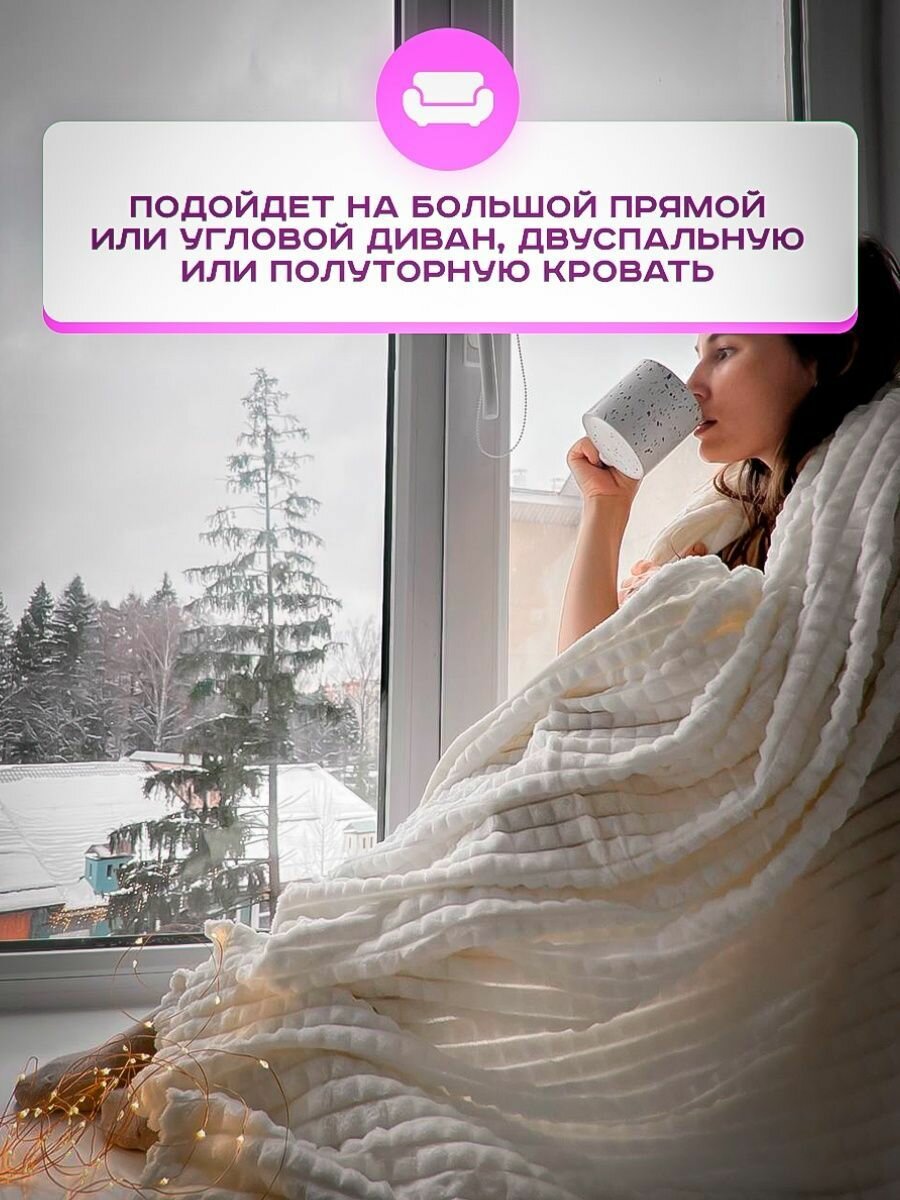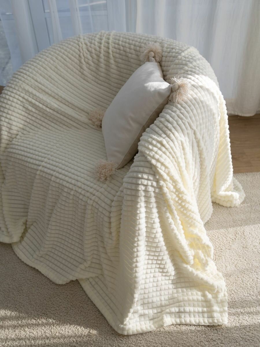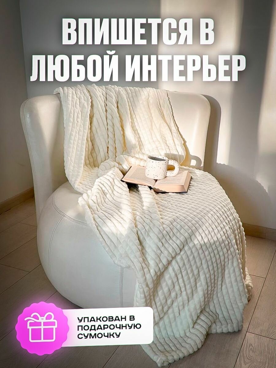 Плед кубик,евро, Плед-покрывало, велсофт, 220х200 см, молочный интересное: