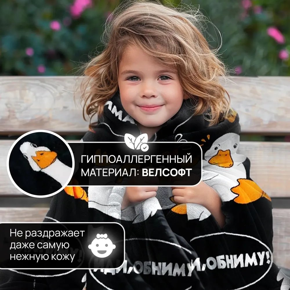 СохранитьПлед с рукавами Totmart плюшевый, плед накидка, плед халат, покрывало для мебели 150х200 см, гусь-обнимусь интересное: