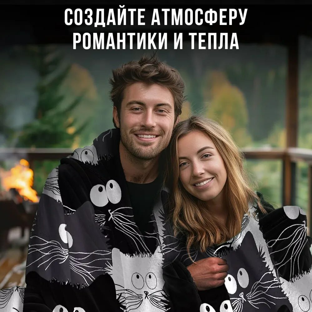 Плед с рукавами Totmart плюшевый, плед накидка, плед халат 150х200 см, коты