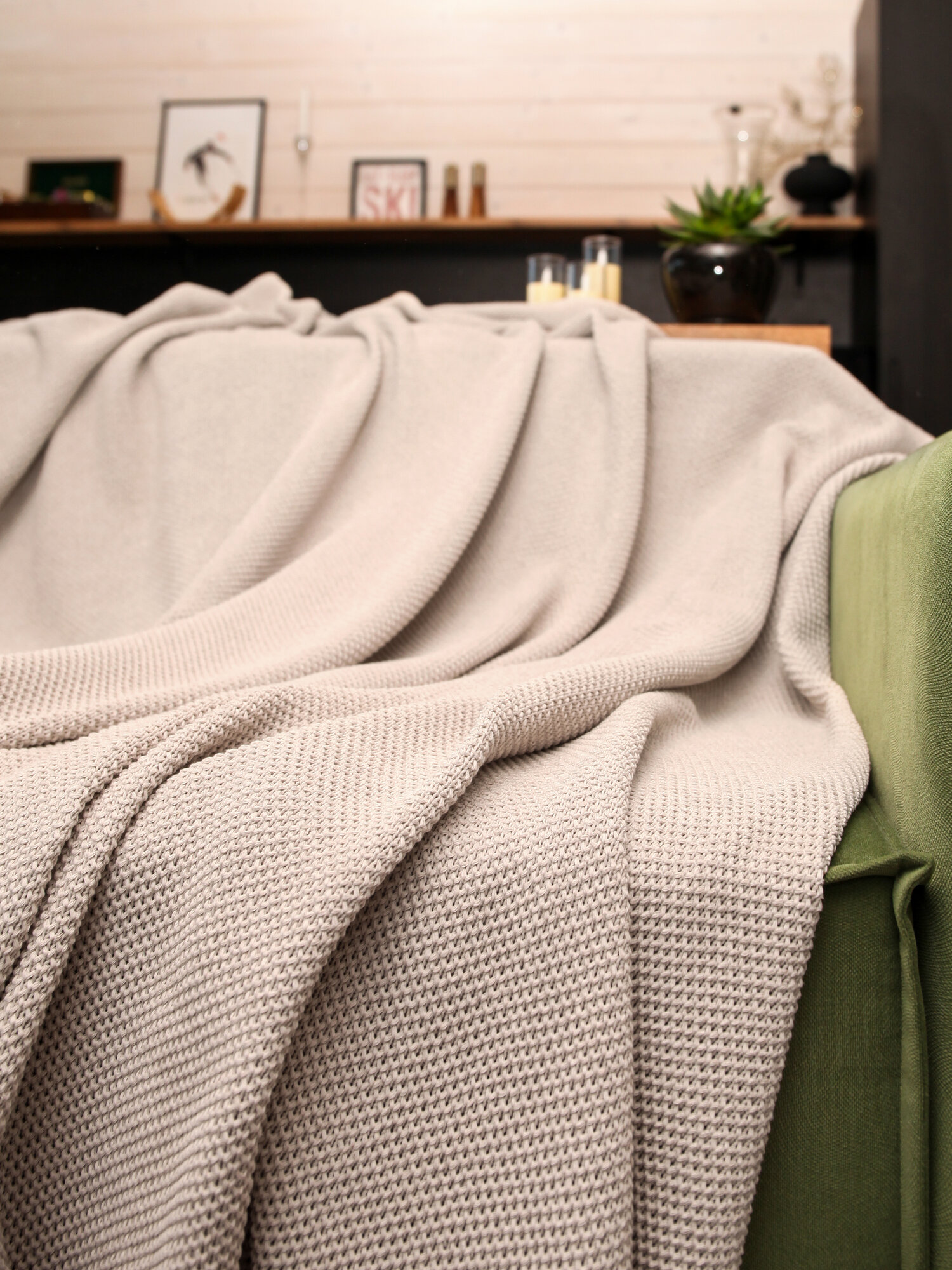 СохранитьПлед 200х220, вязаный, KING PLAID, светло-бежевый, хлопок 100%, покрывало на кровать, на диван, на кресло, большой, тонкий, в подарочной сумке интересное: