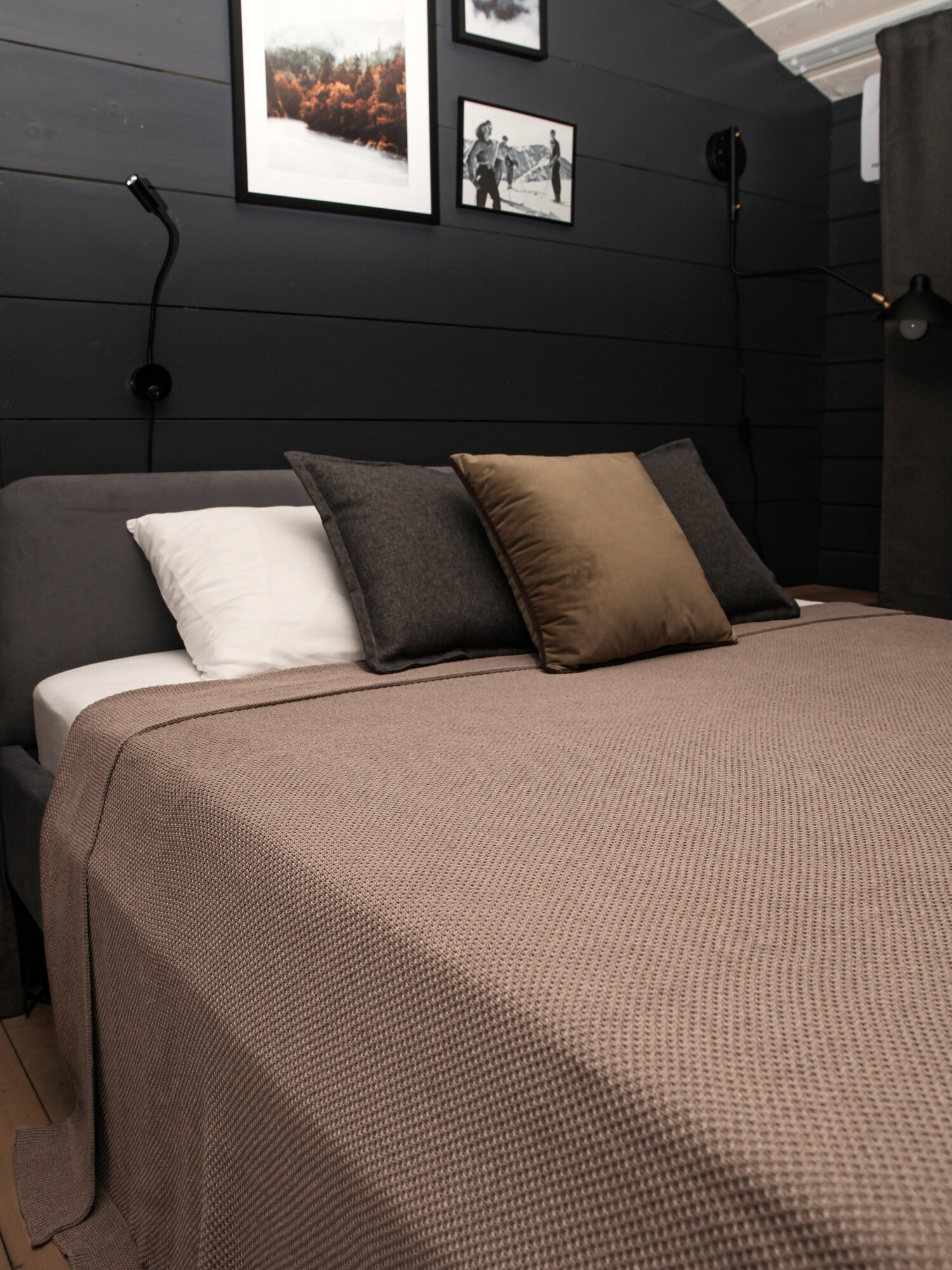 Плед 200х220, вязаный, KING PLAID, темно-серый, хлопок 100%, покрывало на кровать, на диван, на кресло, большой, тонкий, в подарочной сумке