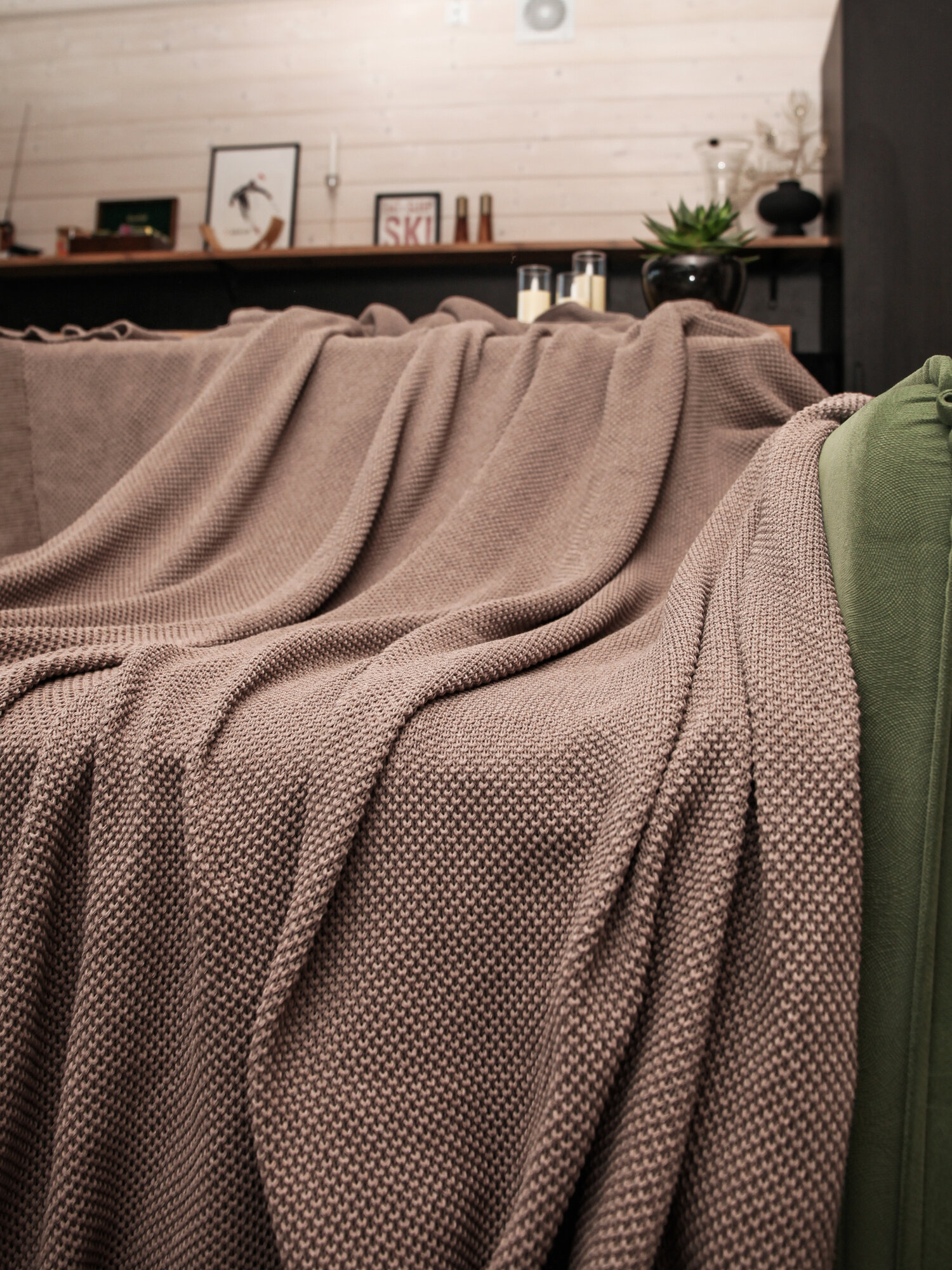 Плед 200х220, вязаный, KING PLAID, оливковый, хлопок 100%, покрывало на кровать, на диван, на кресло, большой, тонкий, в подарочной сумке
