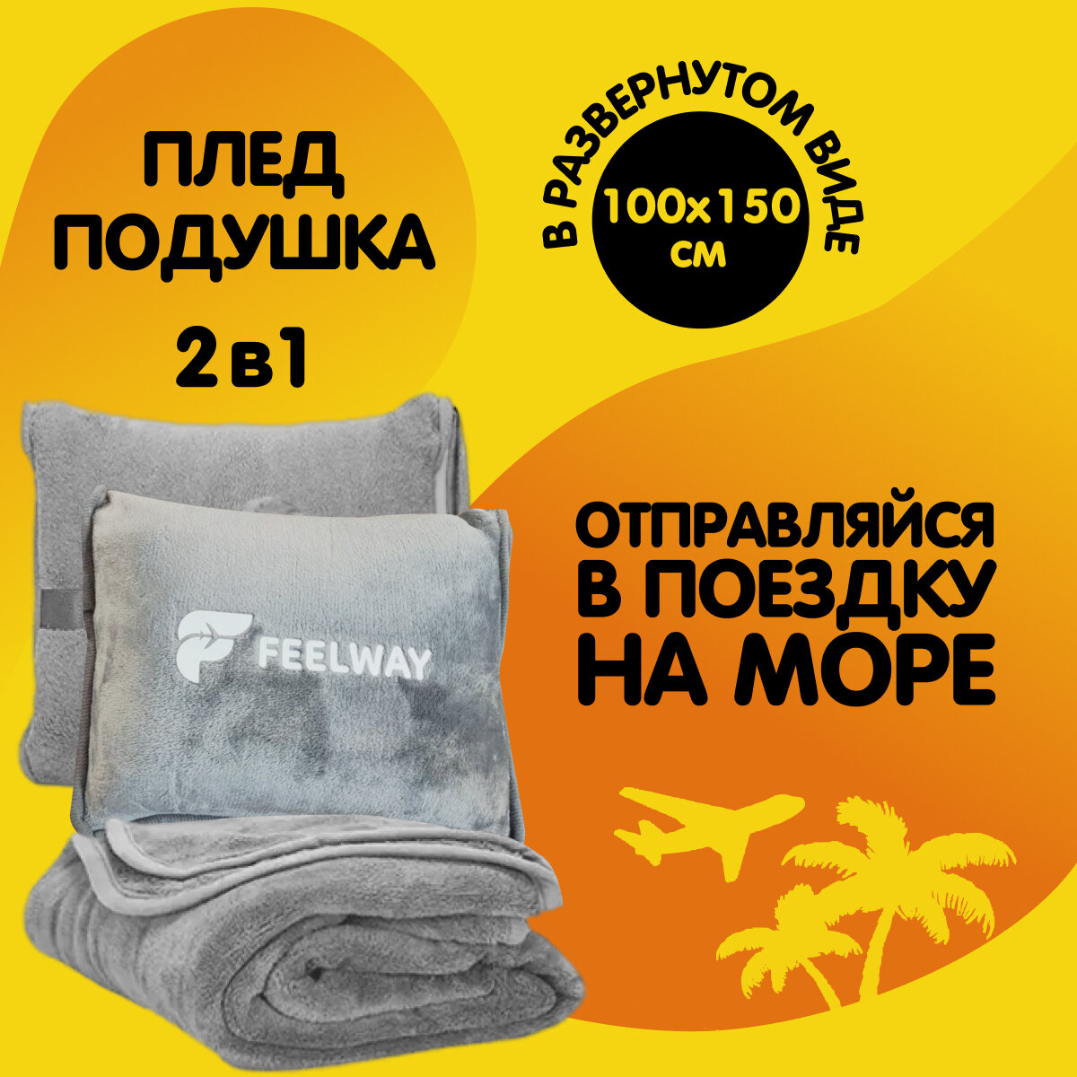 Плед подушка, серый, FEELWAY, покрывало в путешествие интересное: