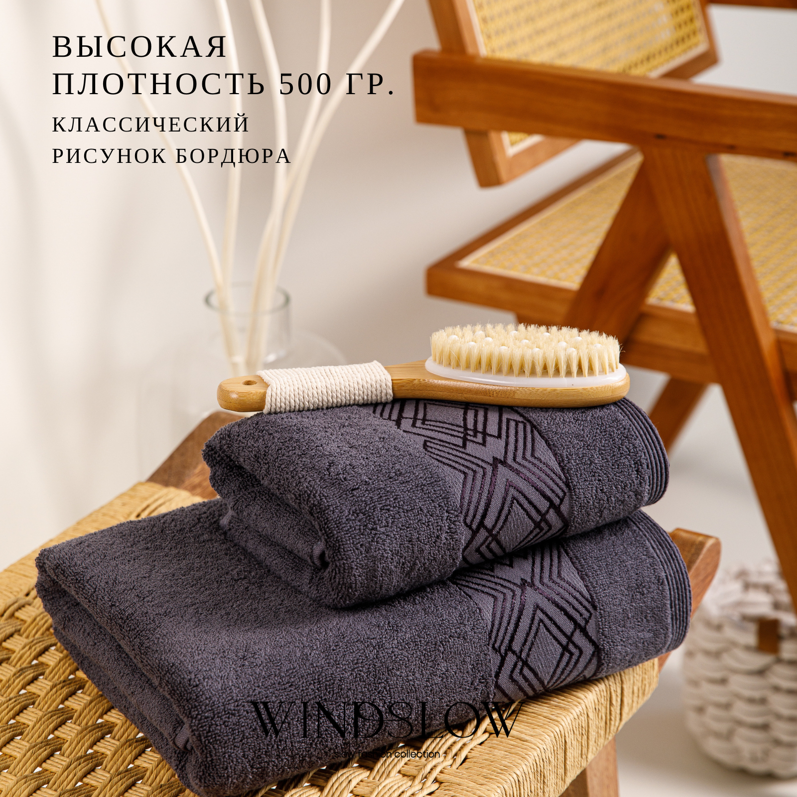 Комплект Полотенец Махровых WINDSLOW "Minimalistik" Graphite Махра 50х90(1) 70х140(1) 2 шт.