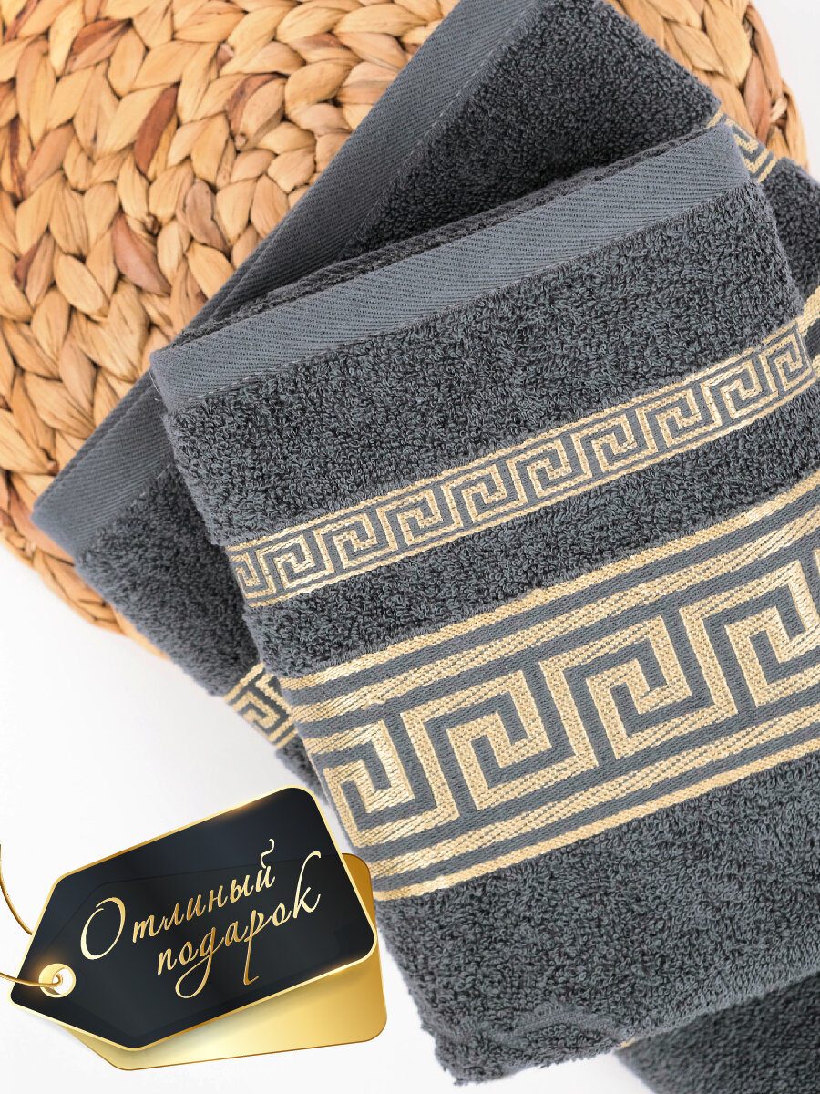 Набор махровых полотенец Эллада 50х80 см + 70х130 см, 100% хлопок, графит
