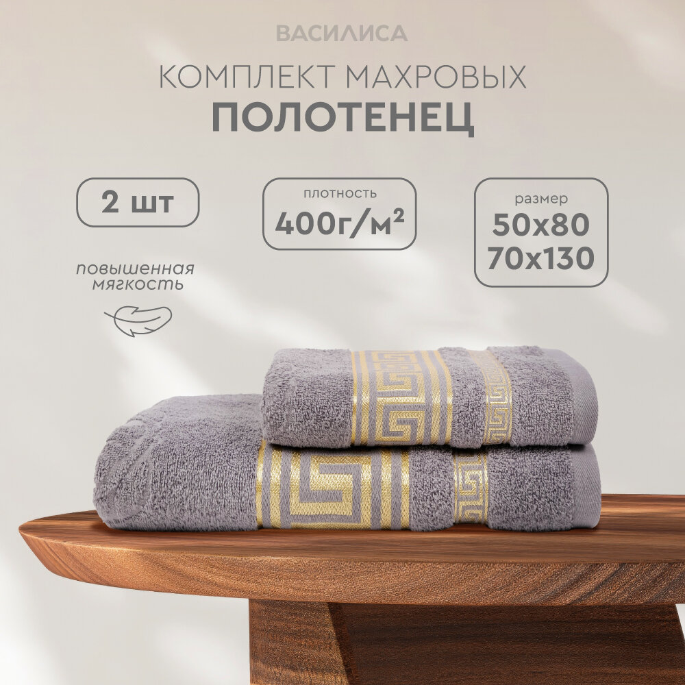Набор махровых полотенец Эллада 50х80 см + 70х130 см, 100% хлопок, серая дымка интересное: