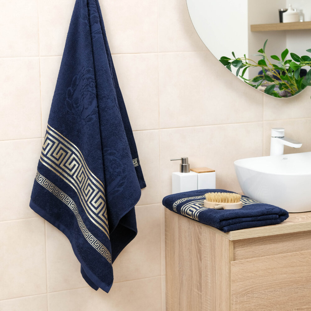 Набор махровых полотенец Эллада 50х80 см + 70х130 см, 100% хлопок, Индиго интересное: