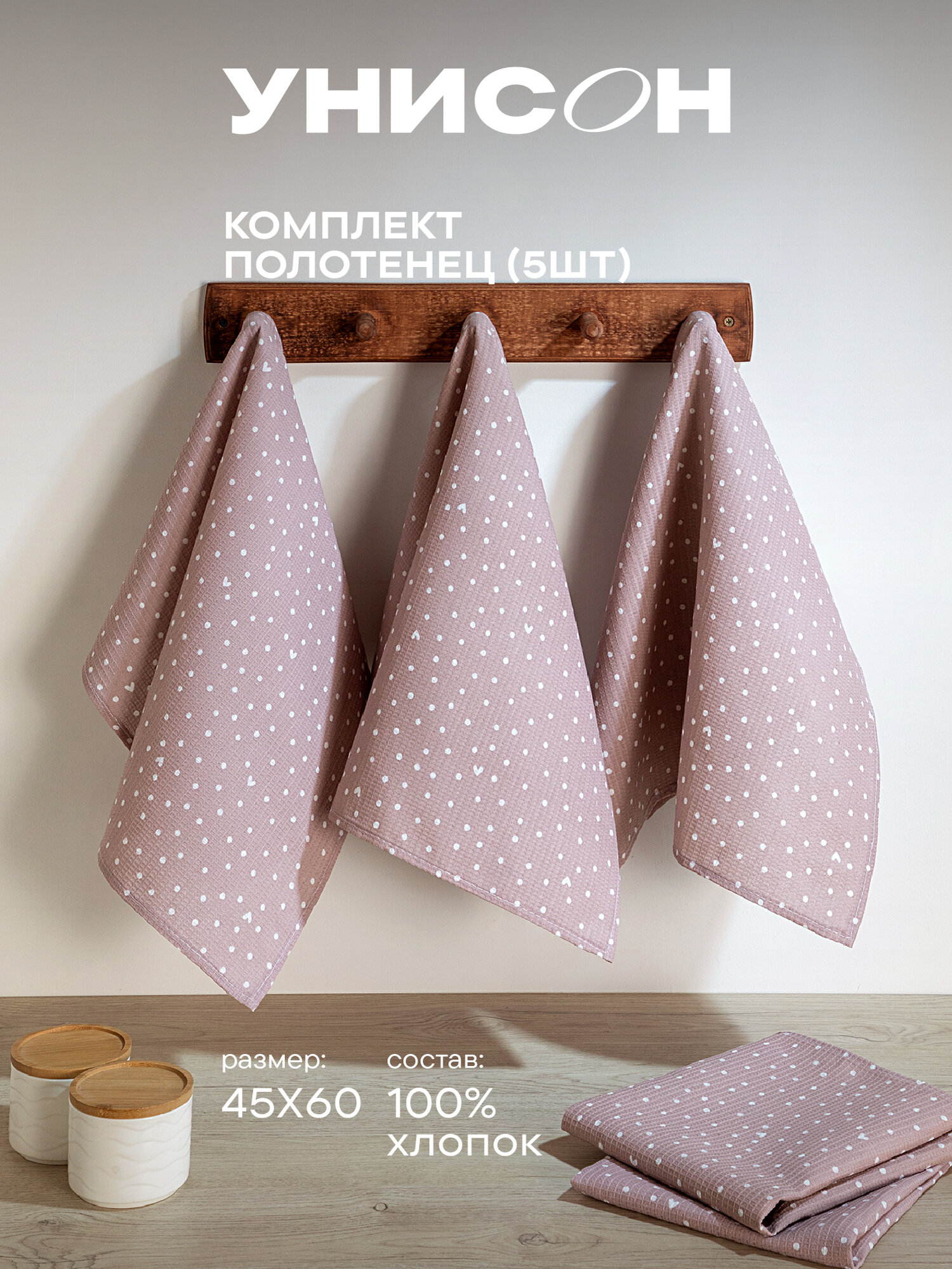 Комплект вафельных полотенец 45х60 (5 шт.) "Унисон" рис 33002-1 Love интересное: