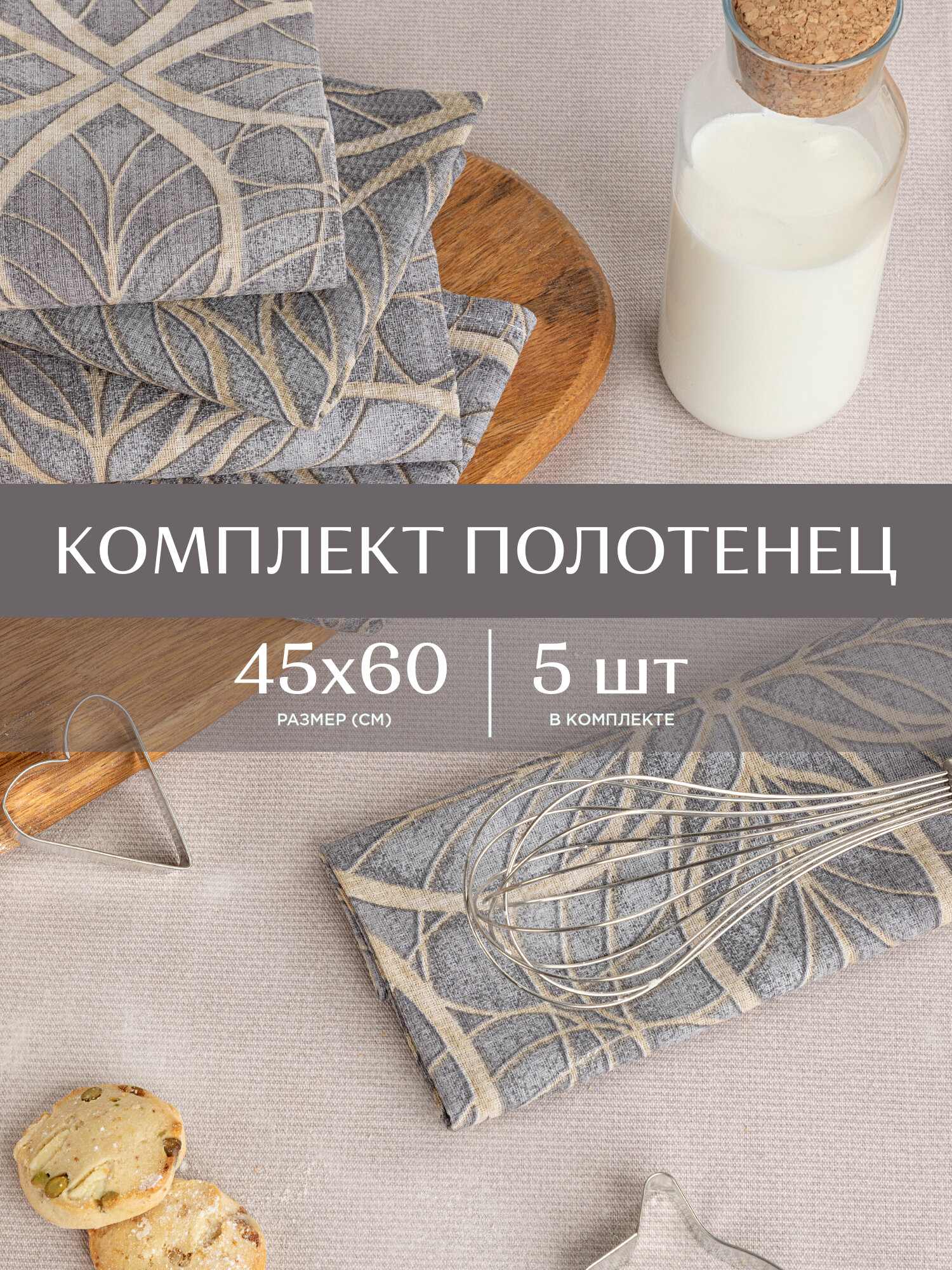 Комплект вафельных полотенец 45х60 (5 шт.) "Унисон" рис 33006-1 Linen