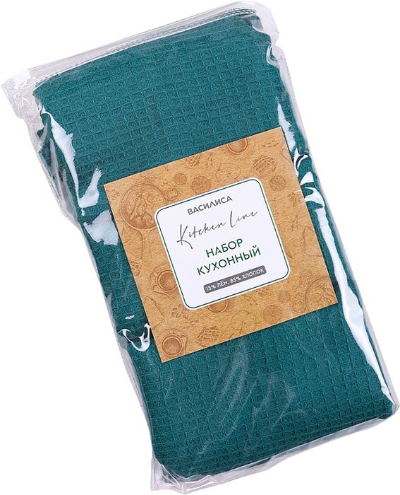 Набор вафельных полотенец Василиса 45х59 см, 3шт, Лен, Хлопок, Зеленый