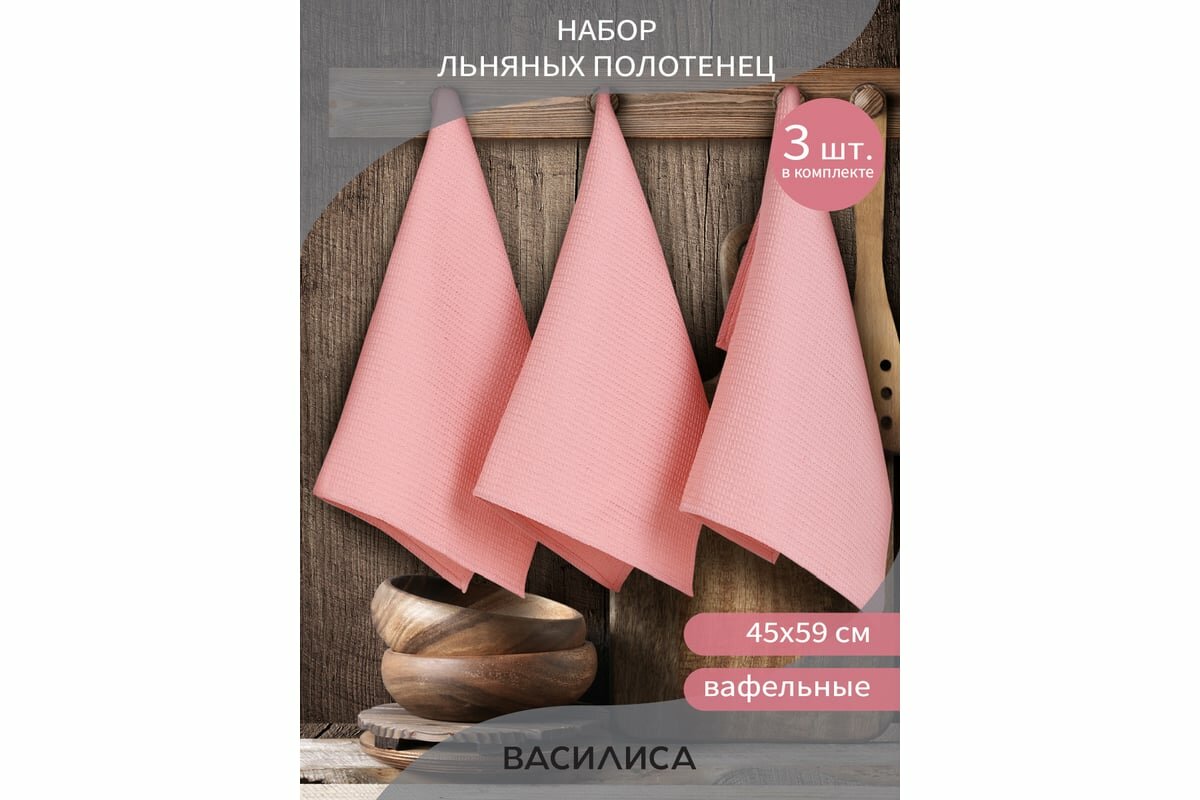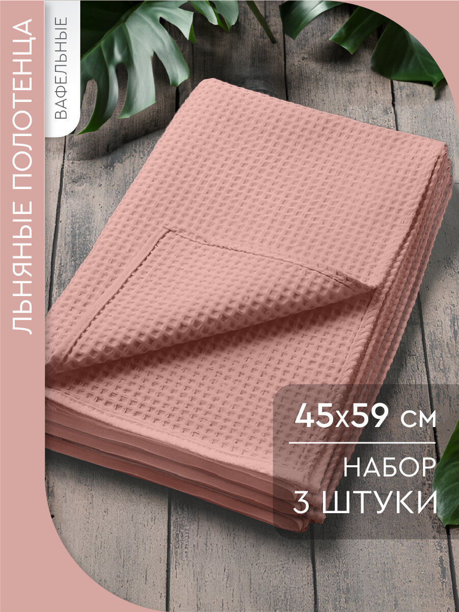 Набор вафельных полотенец Василиса 45х59 см, 3шт, Лен, Хлопок, Персиковый