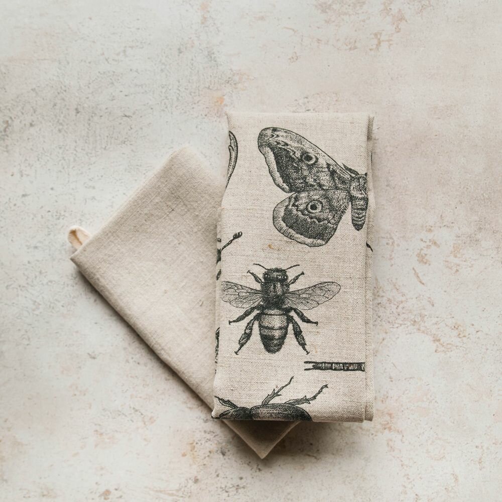 Набор полотенец 2 шт. 38х56 см, принт "насекомые" и однотонное интересное:
