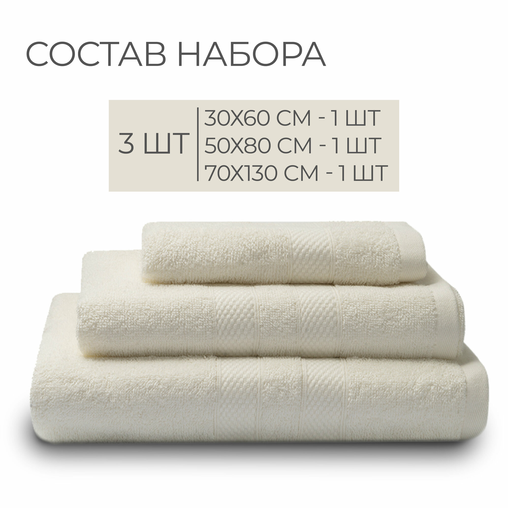 Купить Полотенца махровые Unifico Nature молочный , набор из 3 шт.:30х60-1, 50х80-1,70х130-1