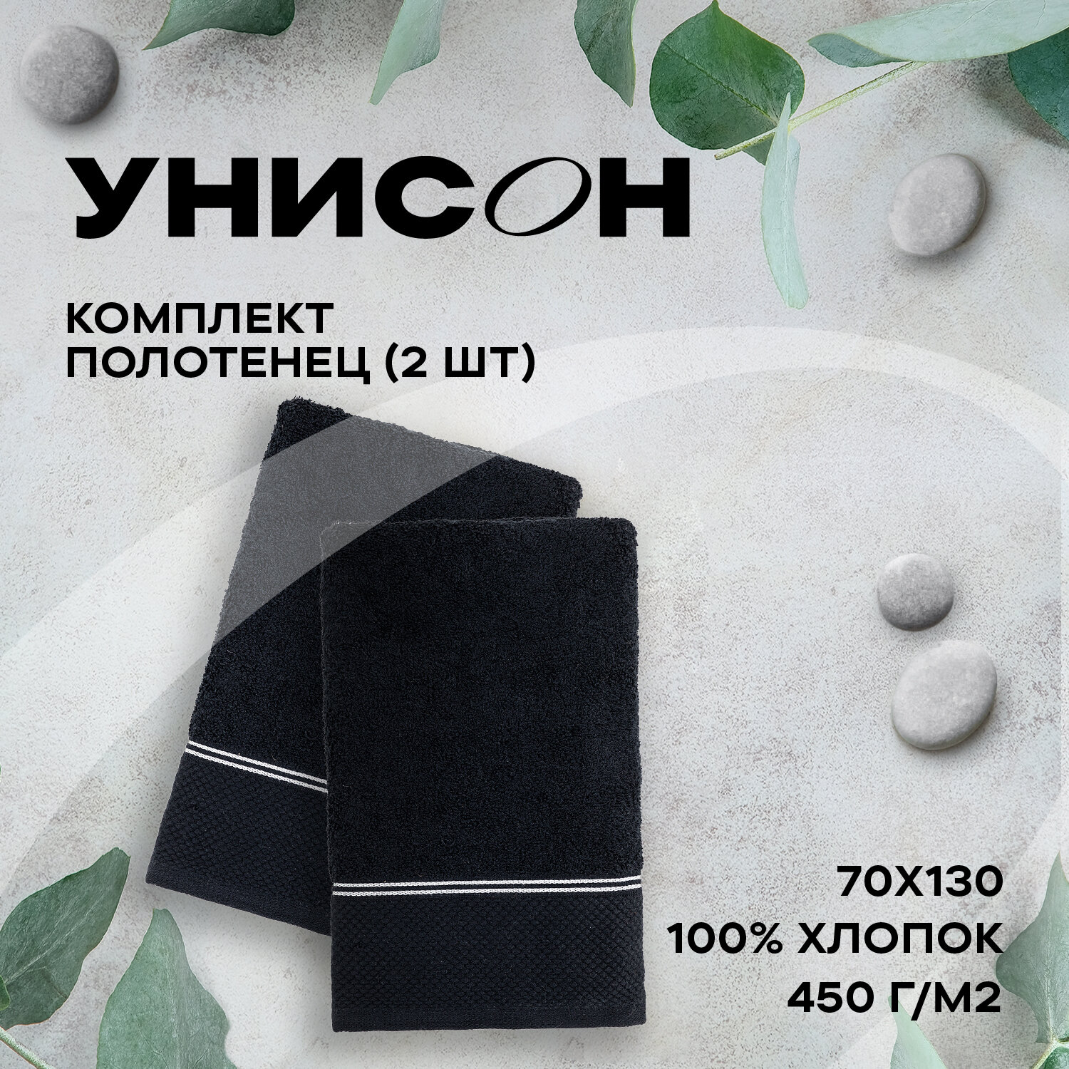 Набор из 2х махровых полотенец (50х90х2шт) "Унисон" Grand Prix черный интересное: