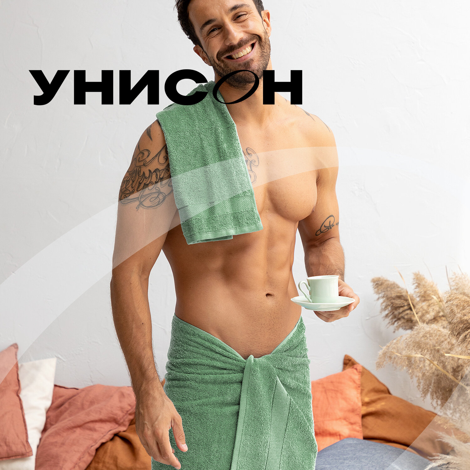 Полотенце махровое (70х130/2шт) / Комплект "Унисон" Raffle зеленый чай