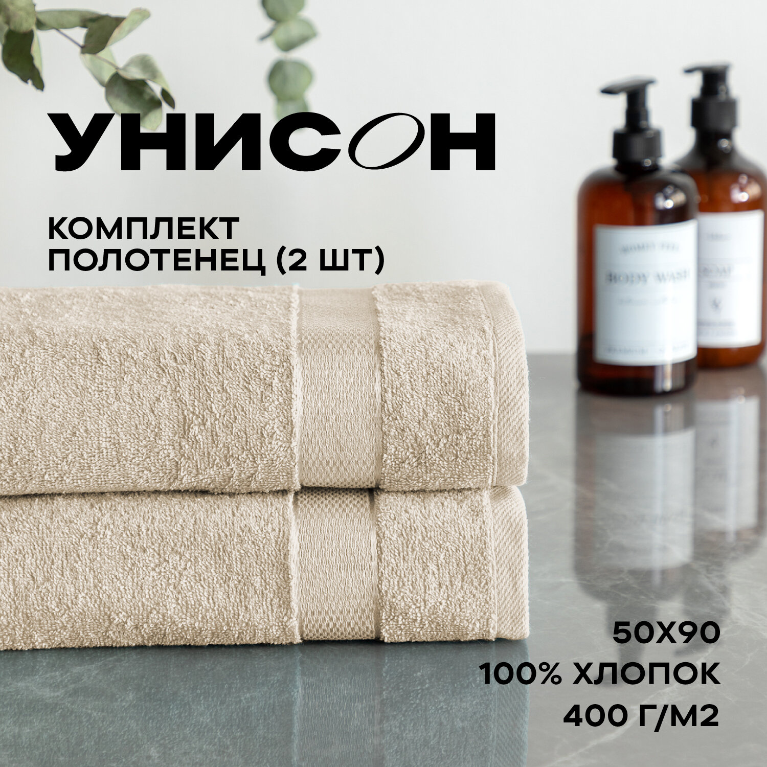 Купить Набор из 2х махровых полотенец (70х130х2шт) "Унисон" Ritz светло-бежевый