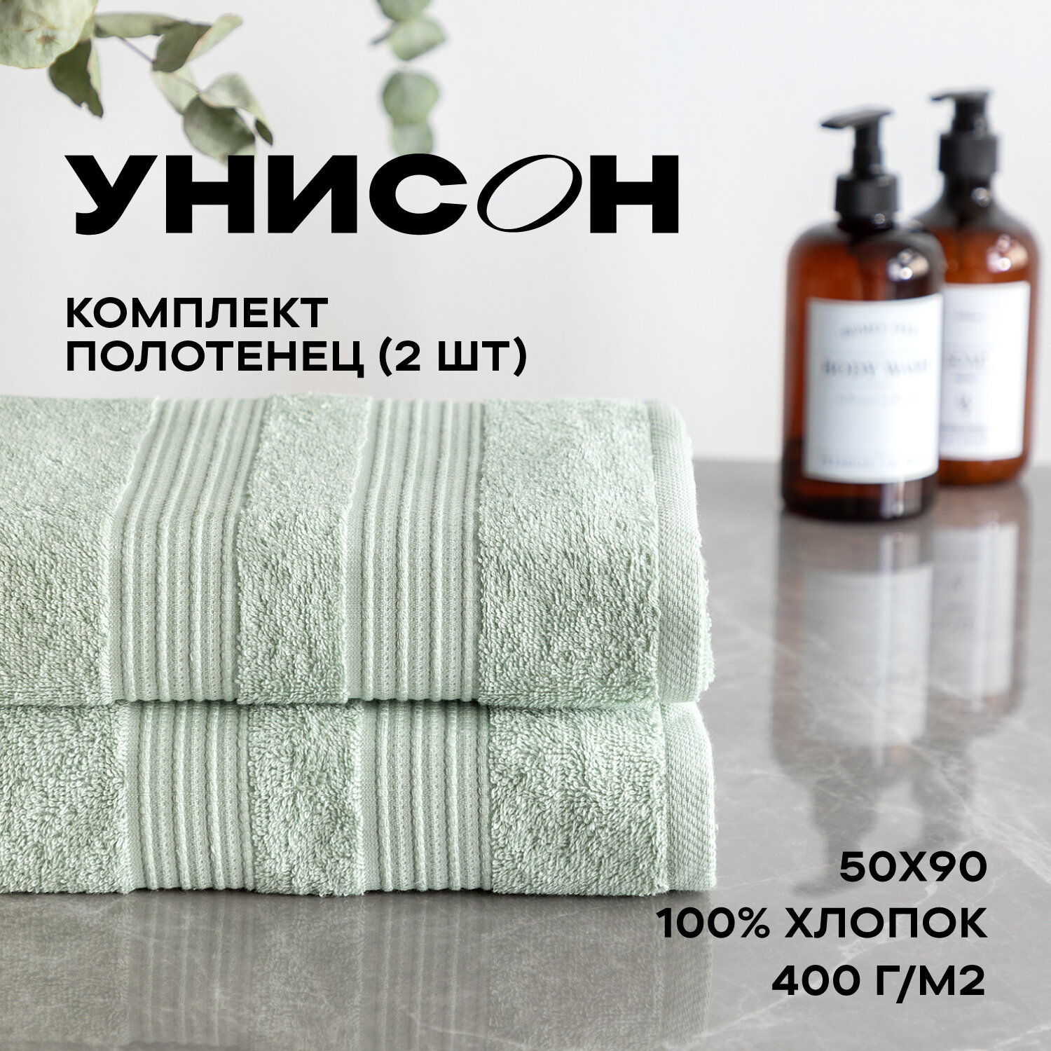 Набор из 2х махровых полотенец (70х130х2шт) "Унисон" Элегант фисташковый