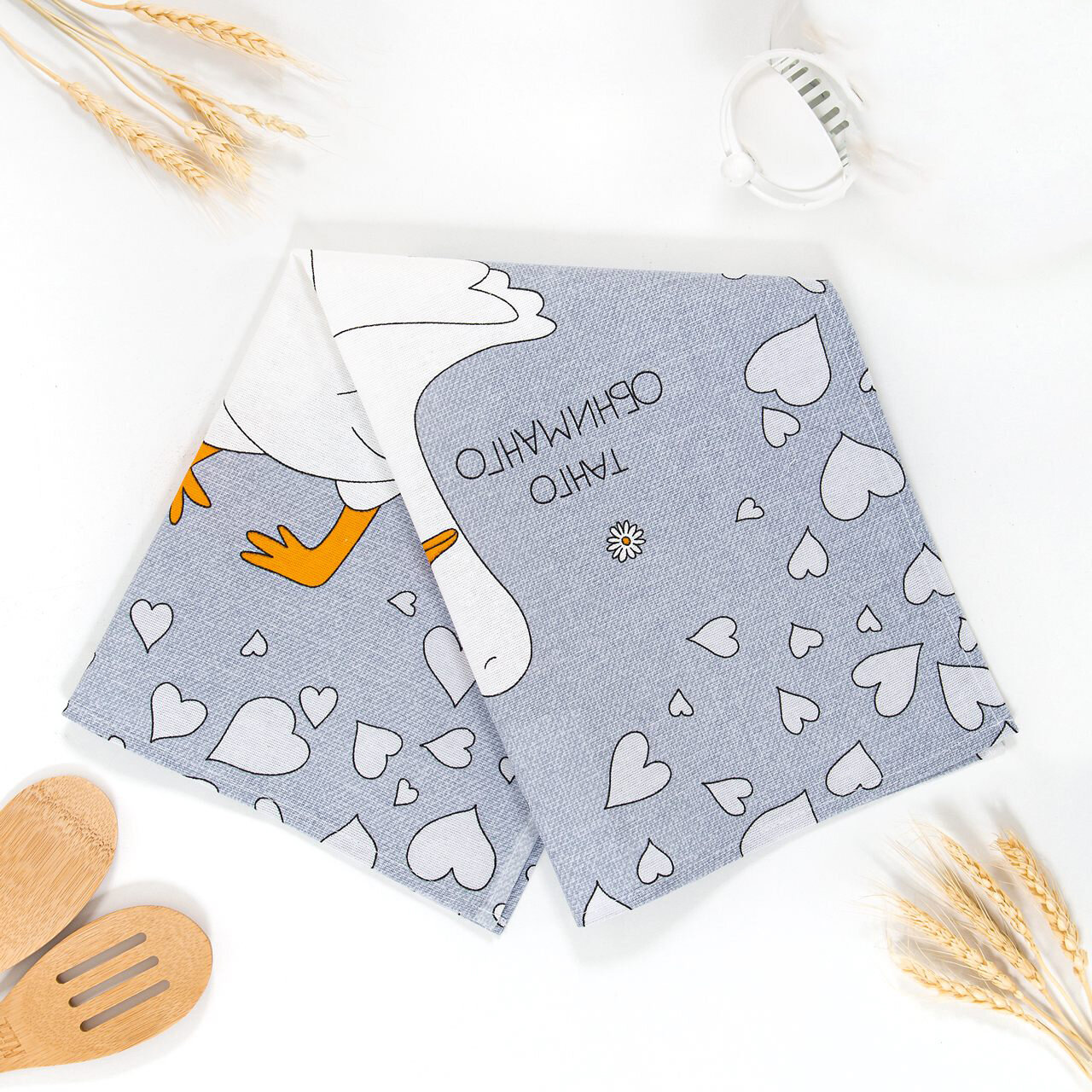 СохранитьНабор кухонных полотенец «Обниманго» - Гуси-обнимуси из рогожки (3шт - 45*60см), АртПостель, гусь, хлопок интересное: