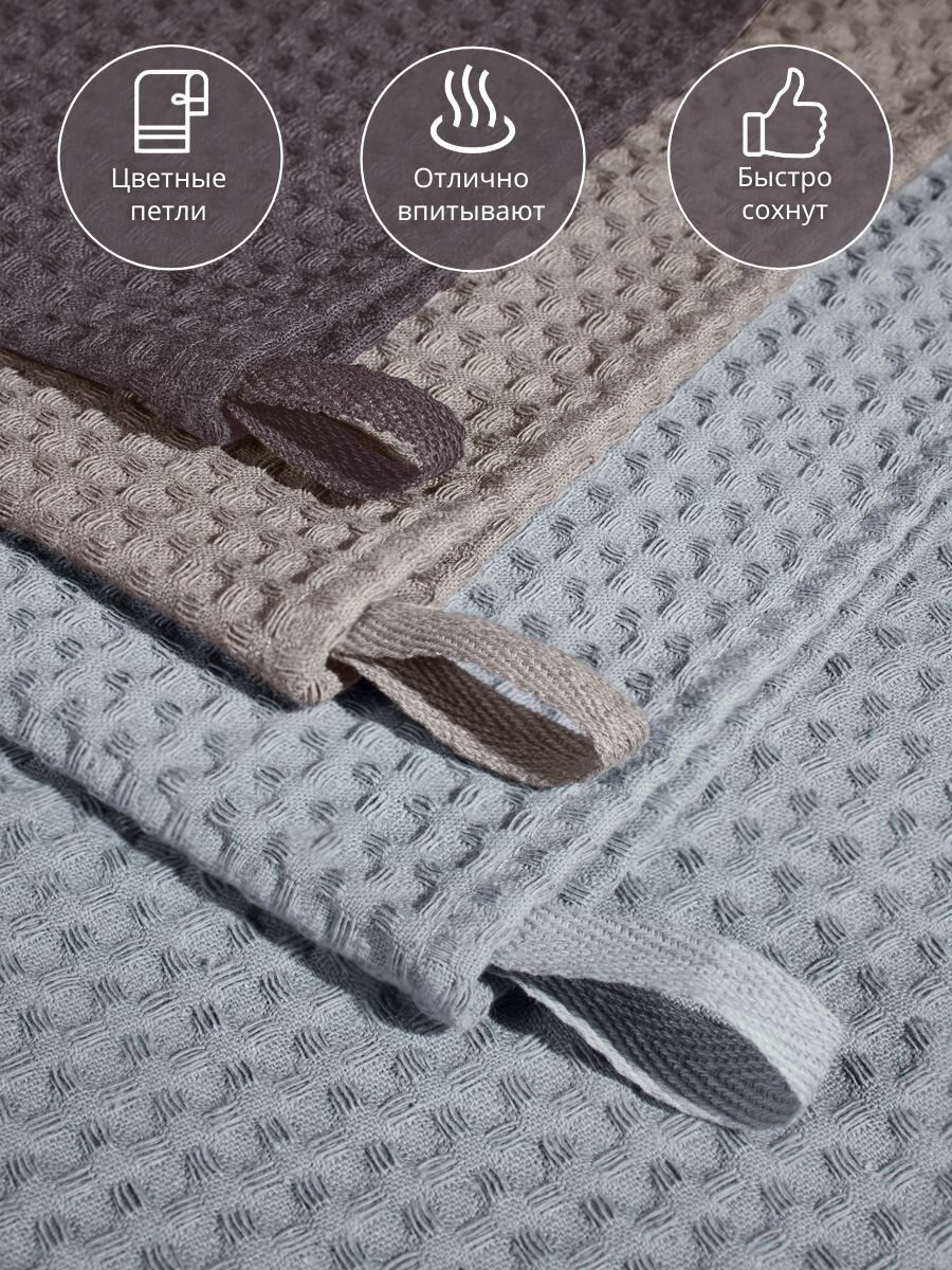 Купить Набор вафельных полотенец для кухни 45х70см, серый/мокко/грейдж