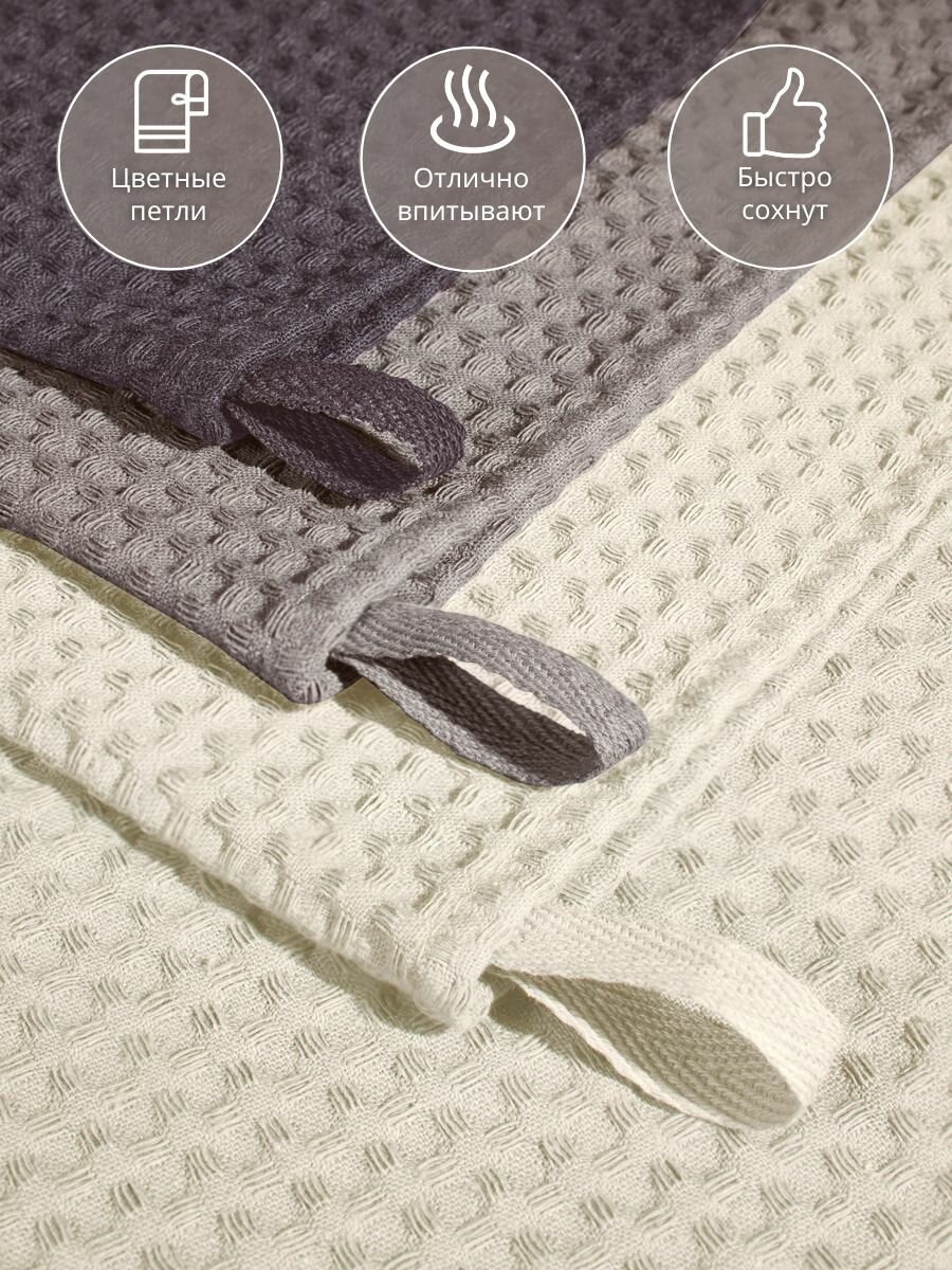 Набор вафельных полотенец для кухни 45х70см, шампань/серый/панг