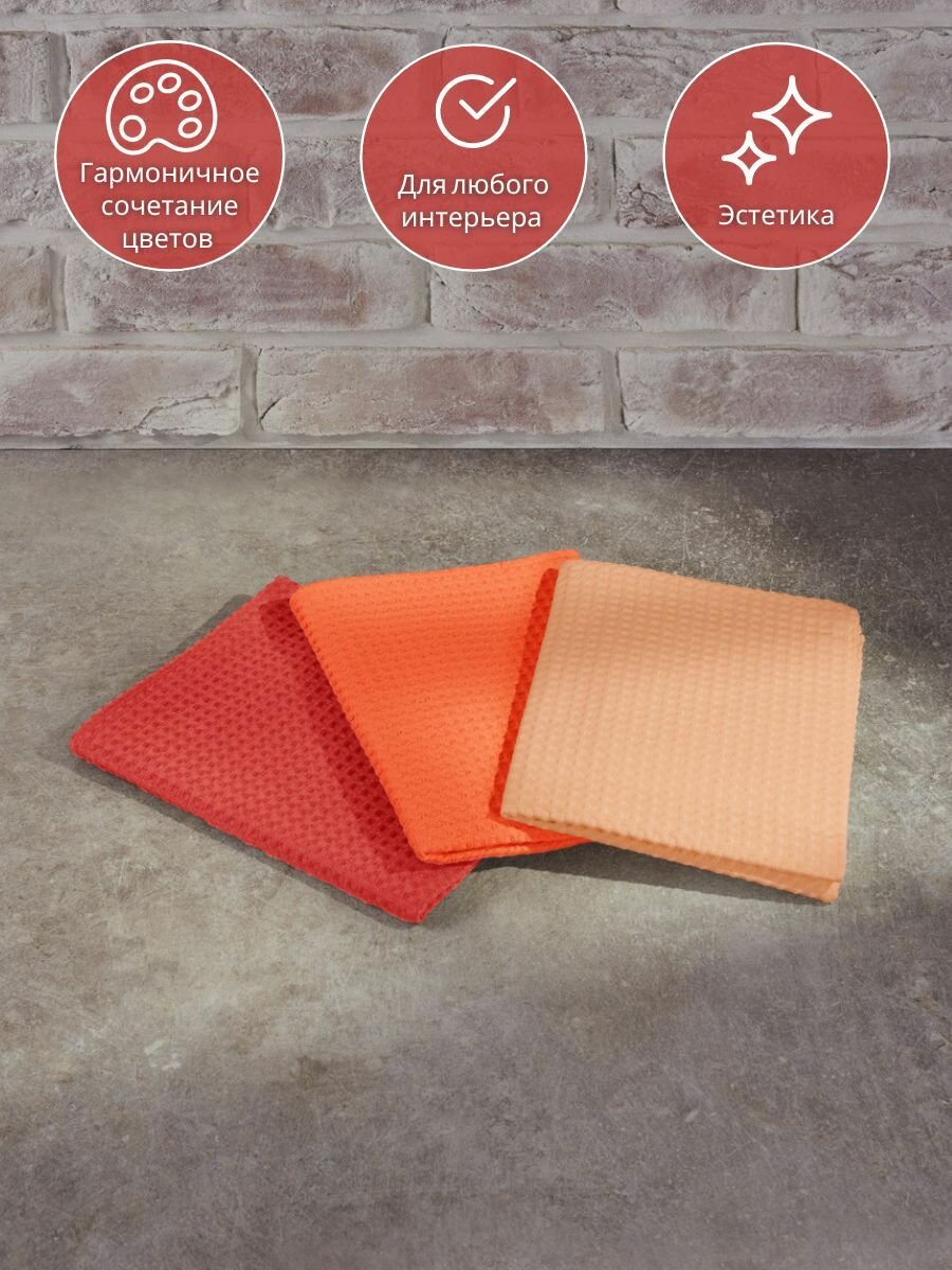СохранитьНабор вафельных полотенец для кухни 45х70см, морковный/персик/кораловый интересное:
