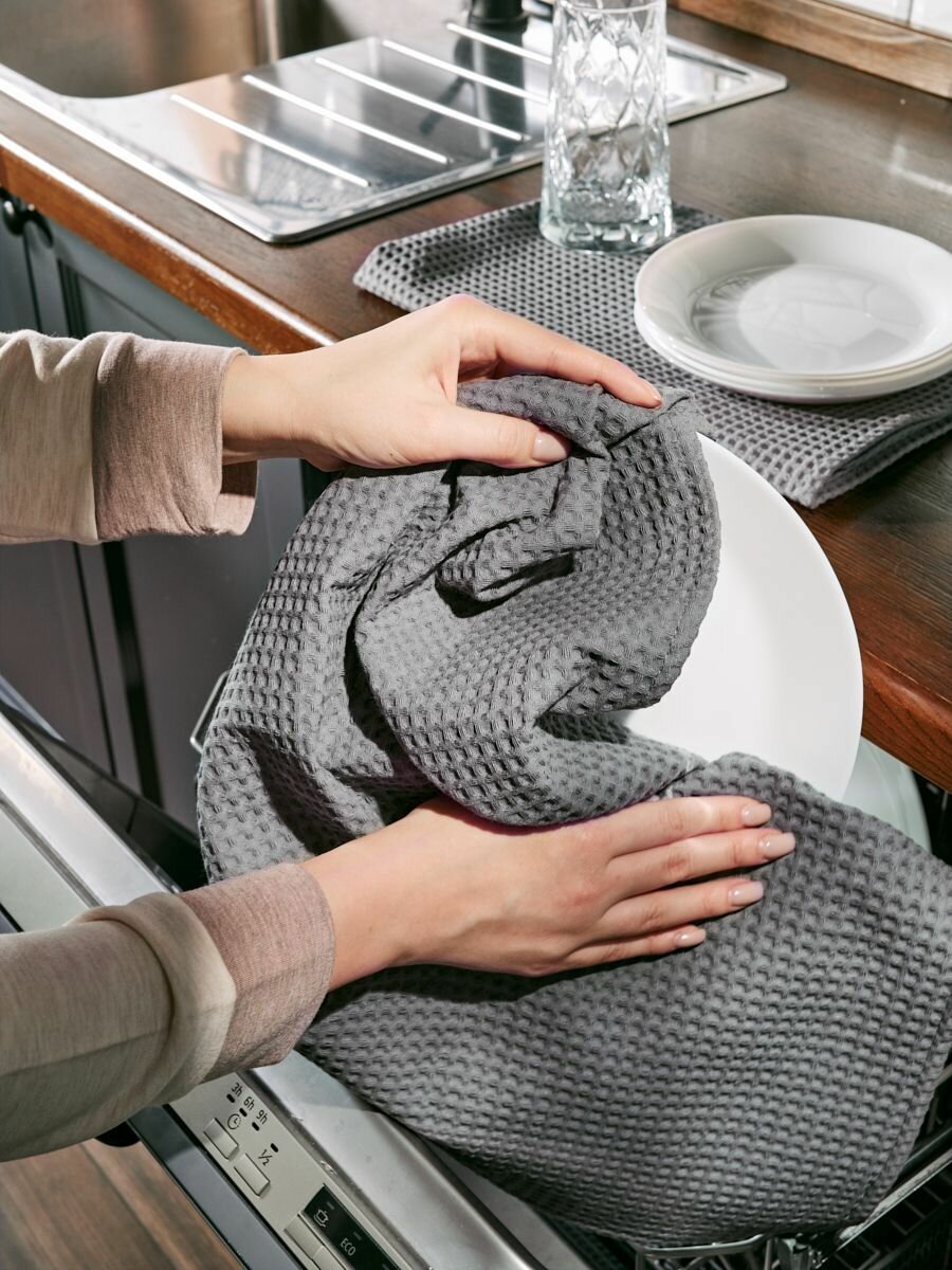 Купить Вафельные полотенца для кухни 3шт, 45х70см, графит