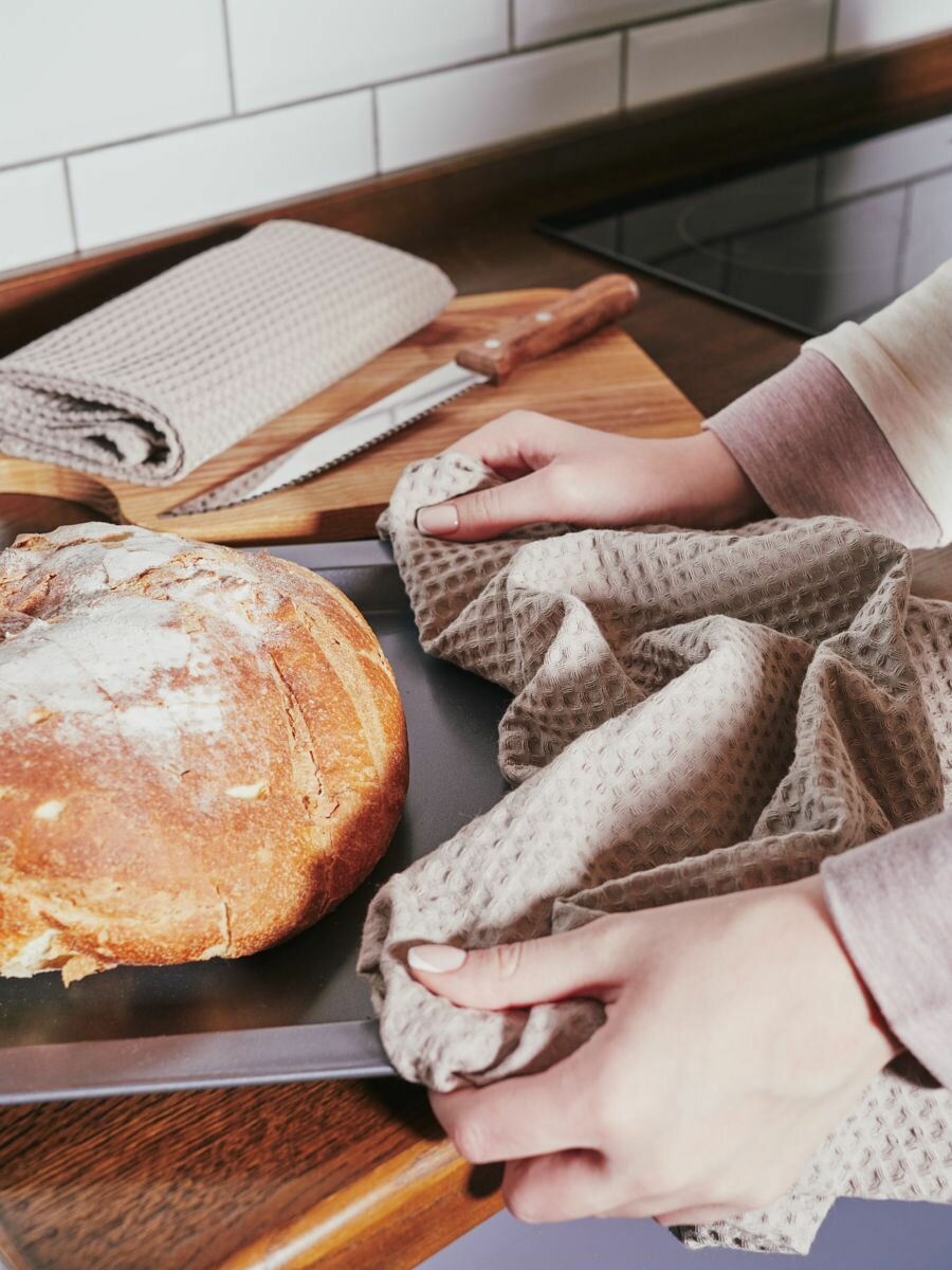 Вафельные полотенца для кухни 3шт, 45х70см, бежевый