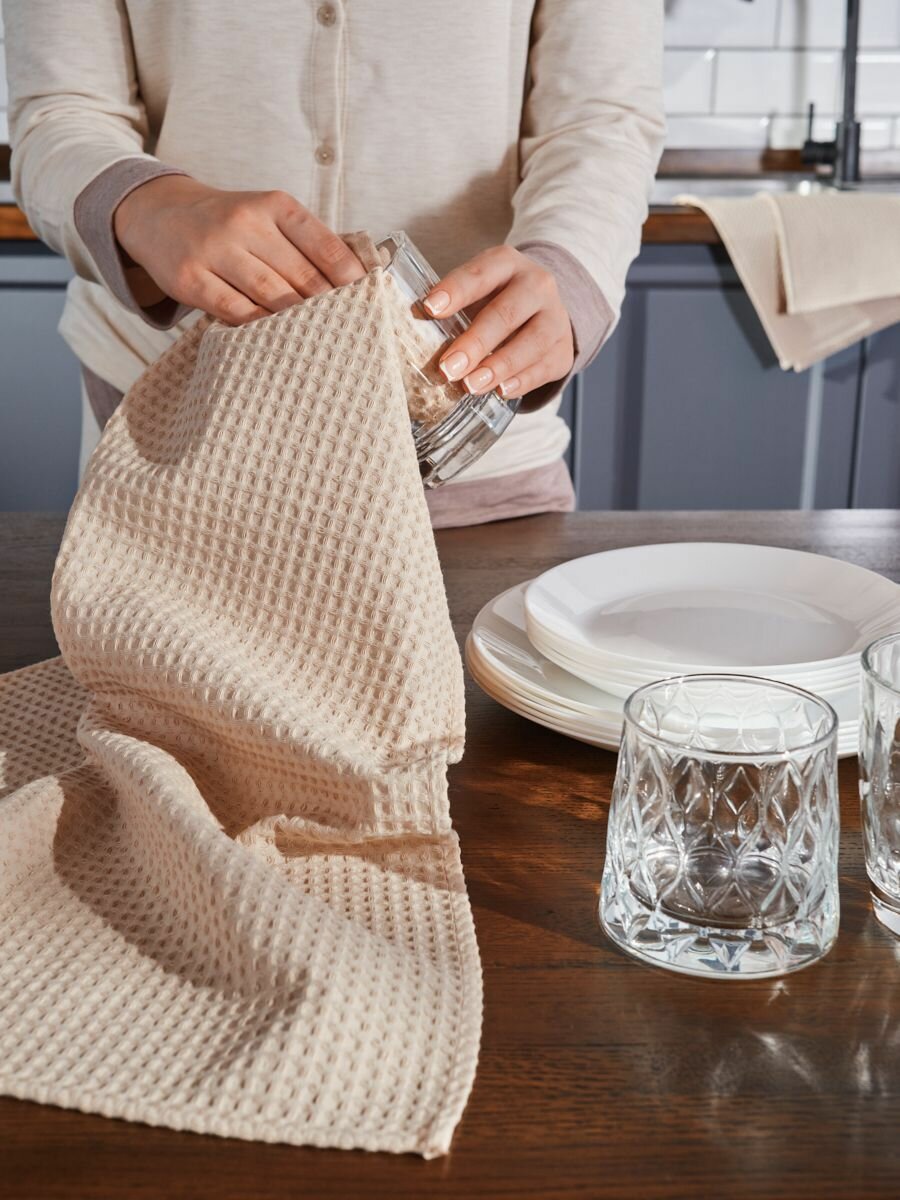 Купить Вафельные полотенца для кухни 3шт, 45х70см, бежевый