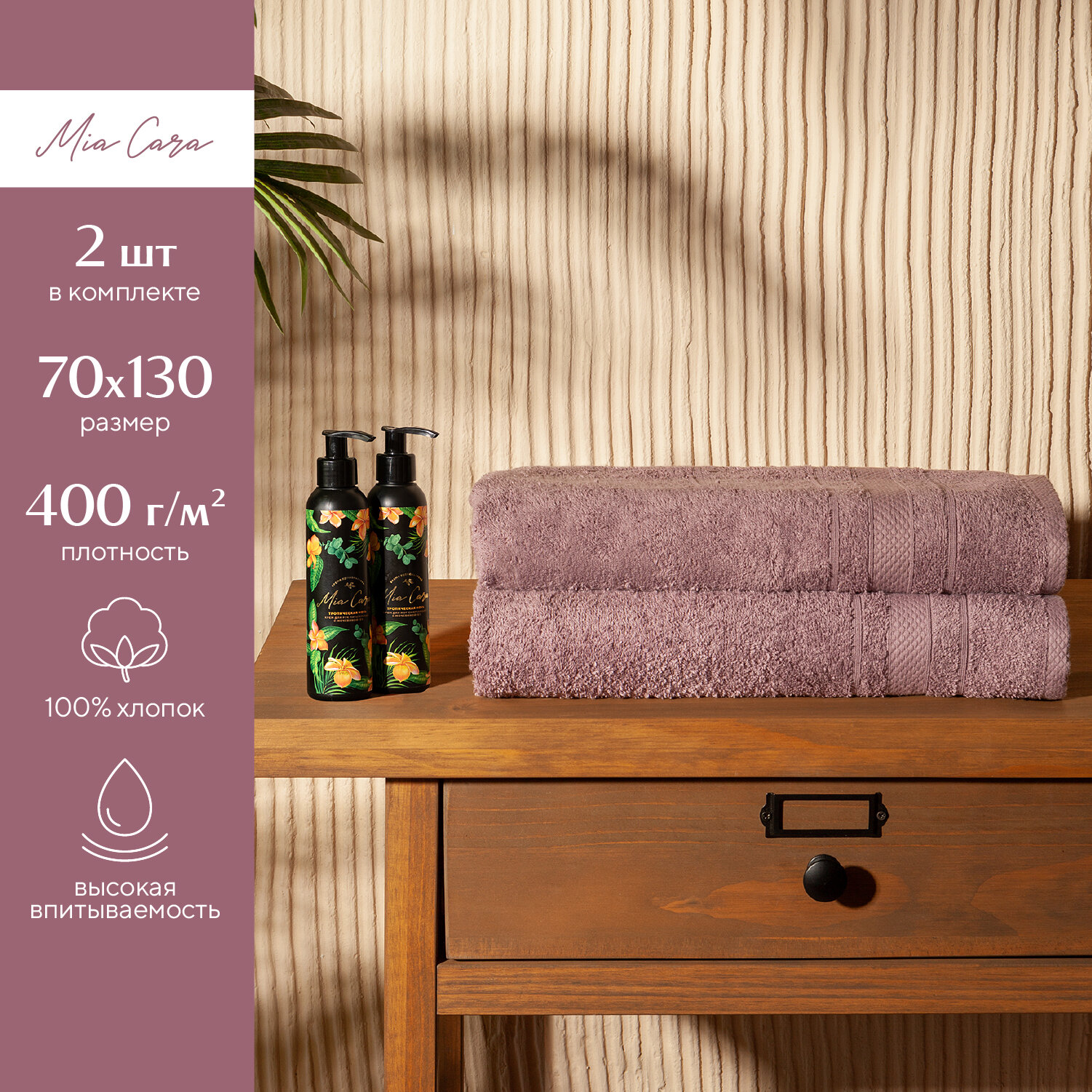 Полотенце банное махровое Mia Cara набор 2 шт 70х130 см, Барбара лаванда