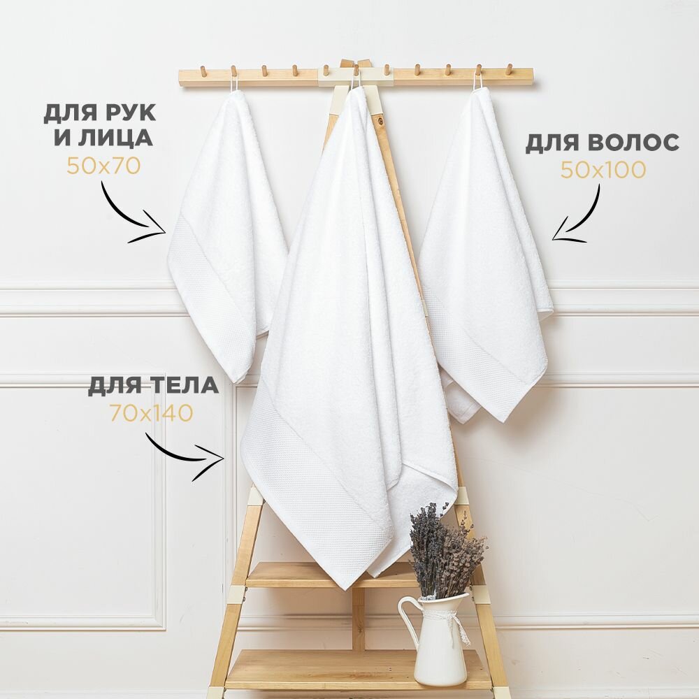 Набор полотенец BELLEHOME "Айвори", махровые, 3 шт., 50х70 см, 50х100 см, 70х140 см, хлопок 100 %