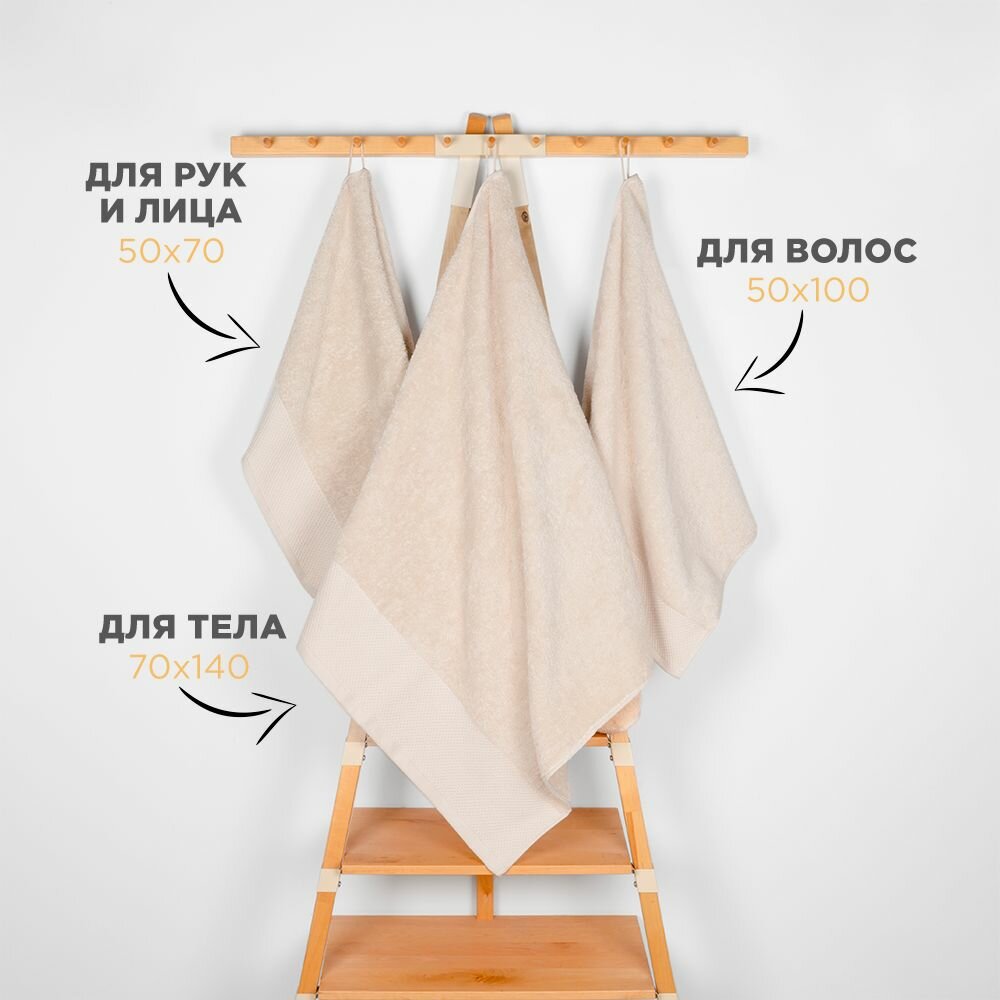 Набор полотенец BELLEHOME "Экрю", махровые, 3 шт, 50х70 см, 50х100 см, 70х140 см, хлопок 100 %