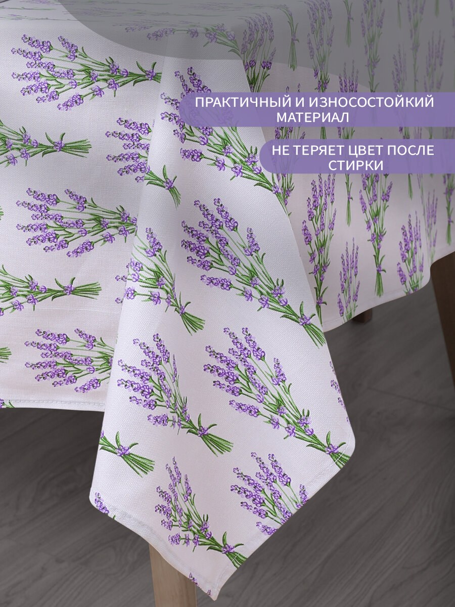 Скатерть кухонная 145х150 см, ткань рогожка, 100% хлопок, Букет лаванды