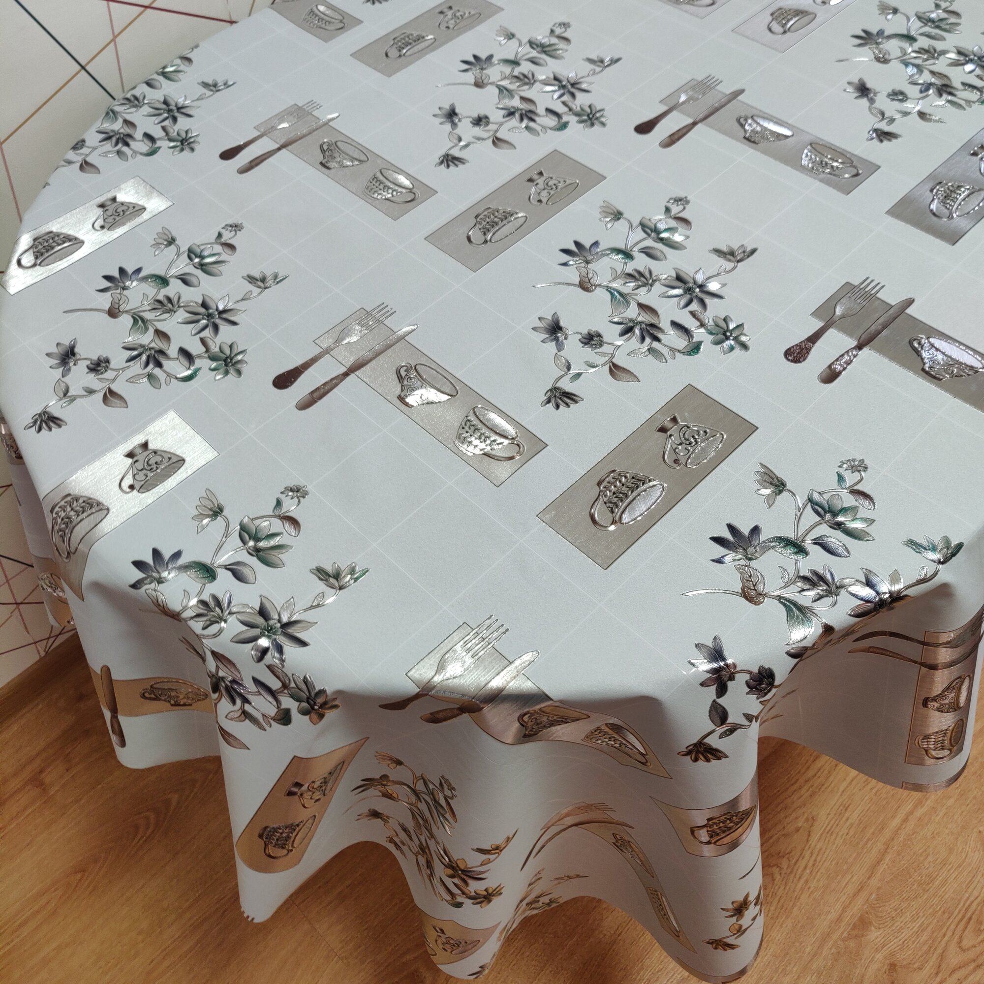Скатерть-Клеенка на стол ПВХ, на тканевой основе 180x140 см Круг