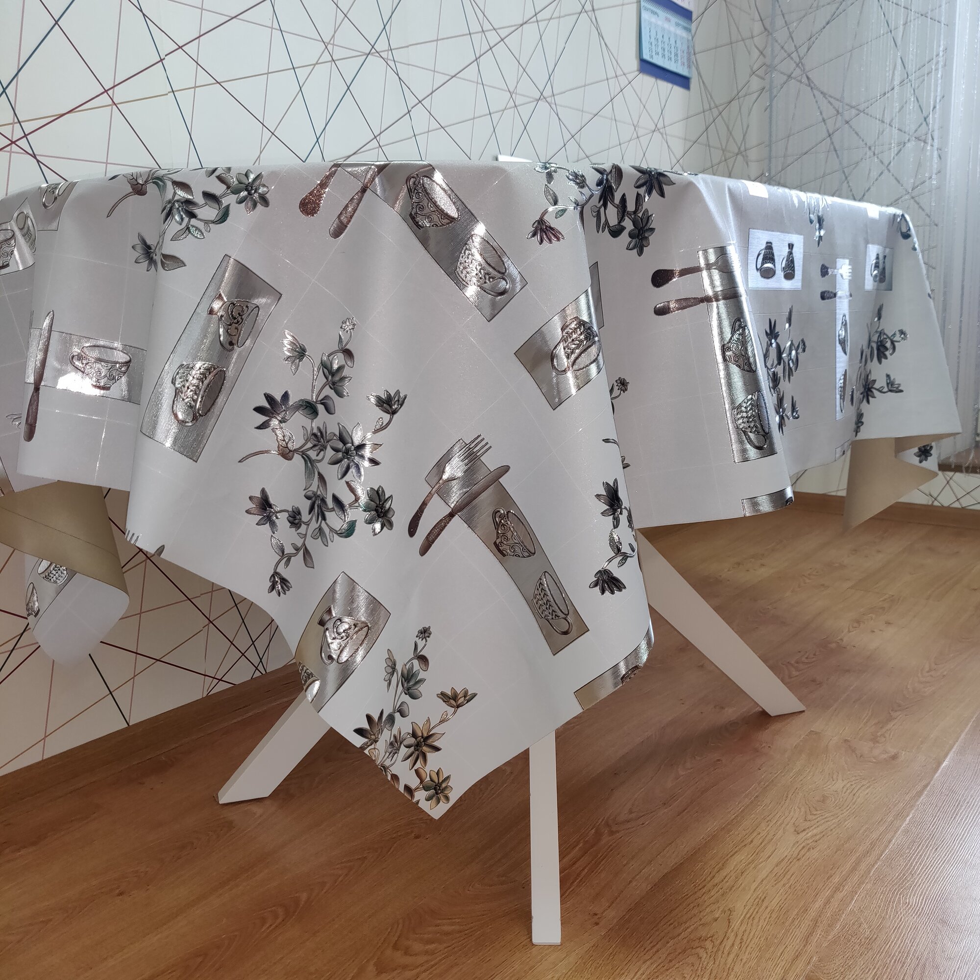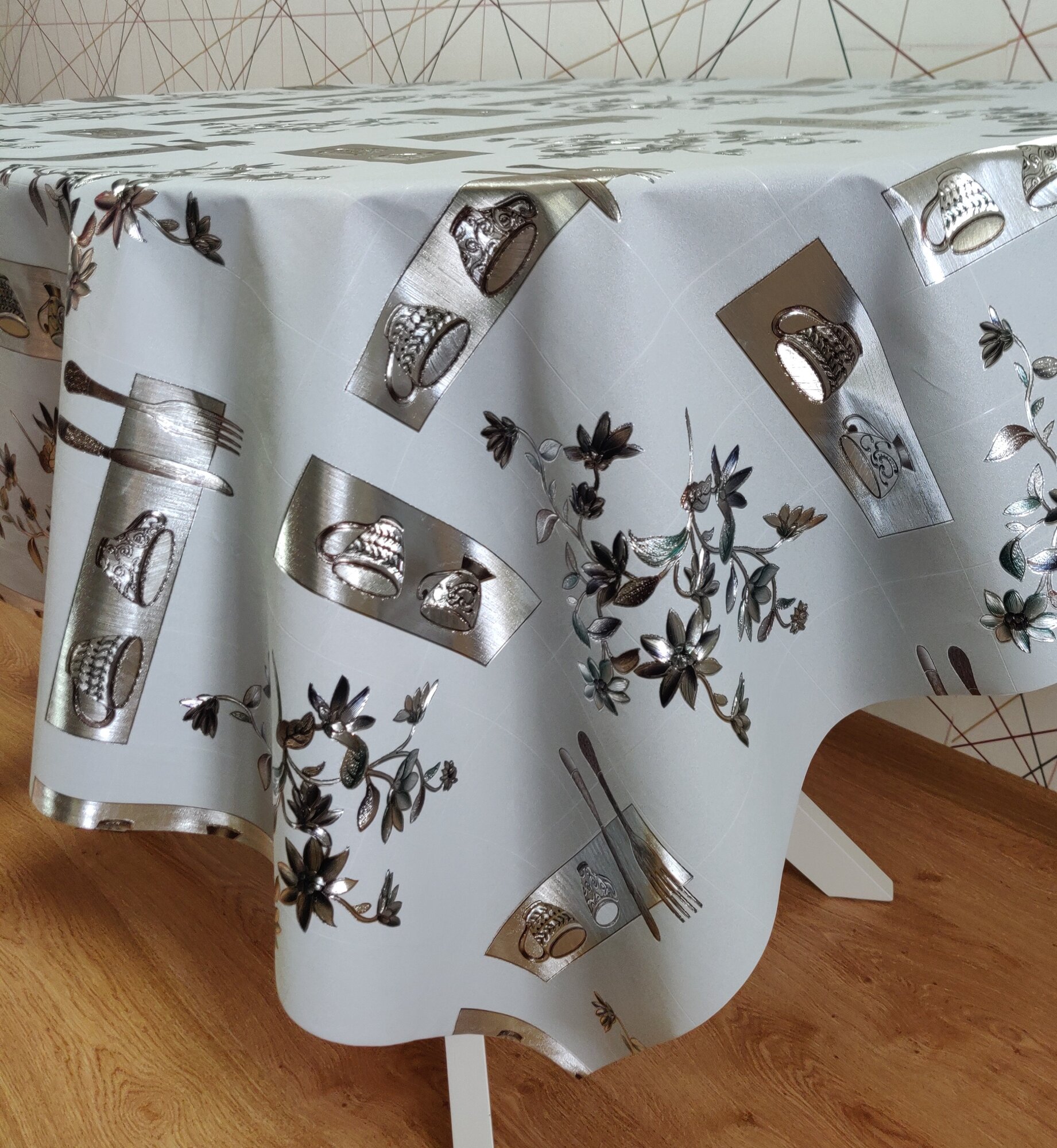 Скатерть-клеёнка на стол ПВХ, на тканевой основе 180х140 см Серебряная