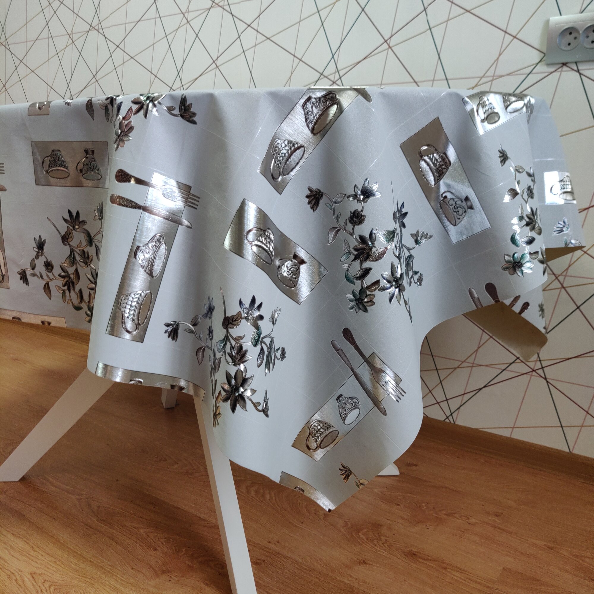 Скатерть-клеёнка на стол ПВХ, на тканевой основе 110х140 см Серебряная