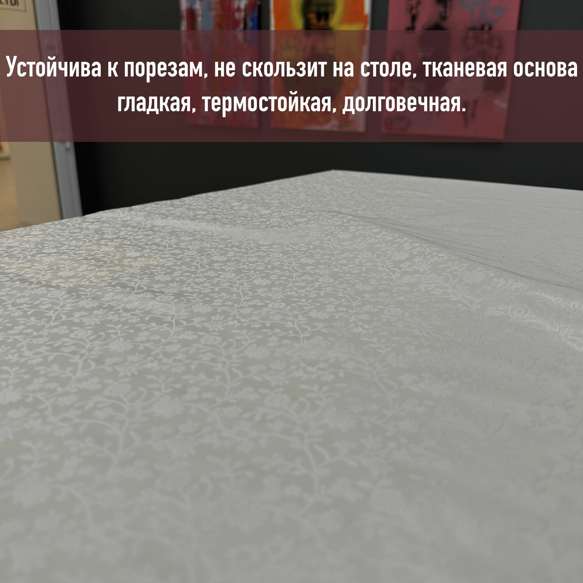 Клеенка на стол на тканевой основе Белые цветочные узоры 180 х137